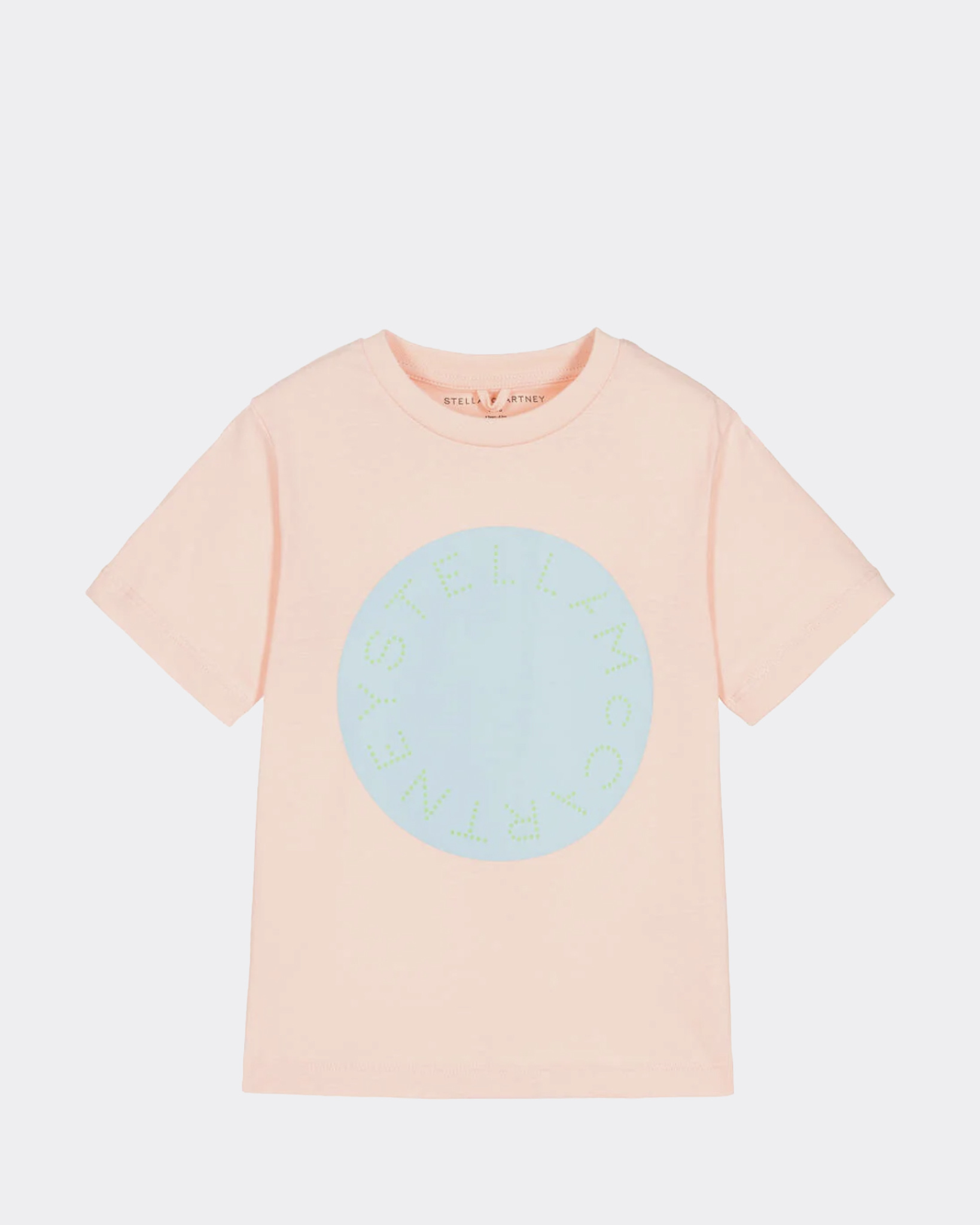 Roze T-shirt van Stella McCartney Kids met een blauw print erop gedrukt met de tekst Stella McCartney. Het t-shirt is het heeft een zachte kwaliteit.