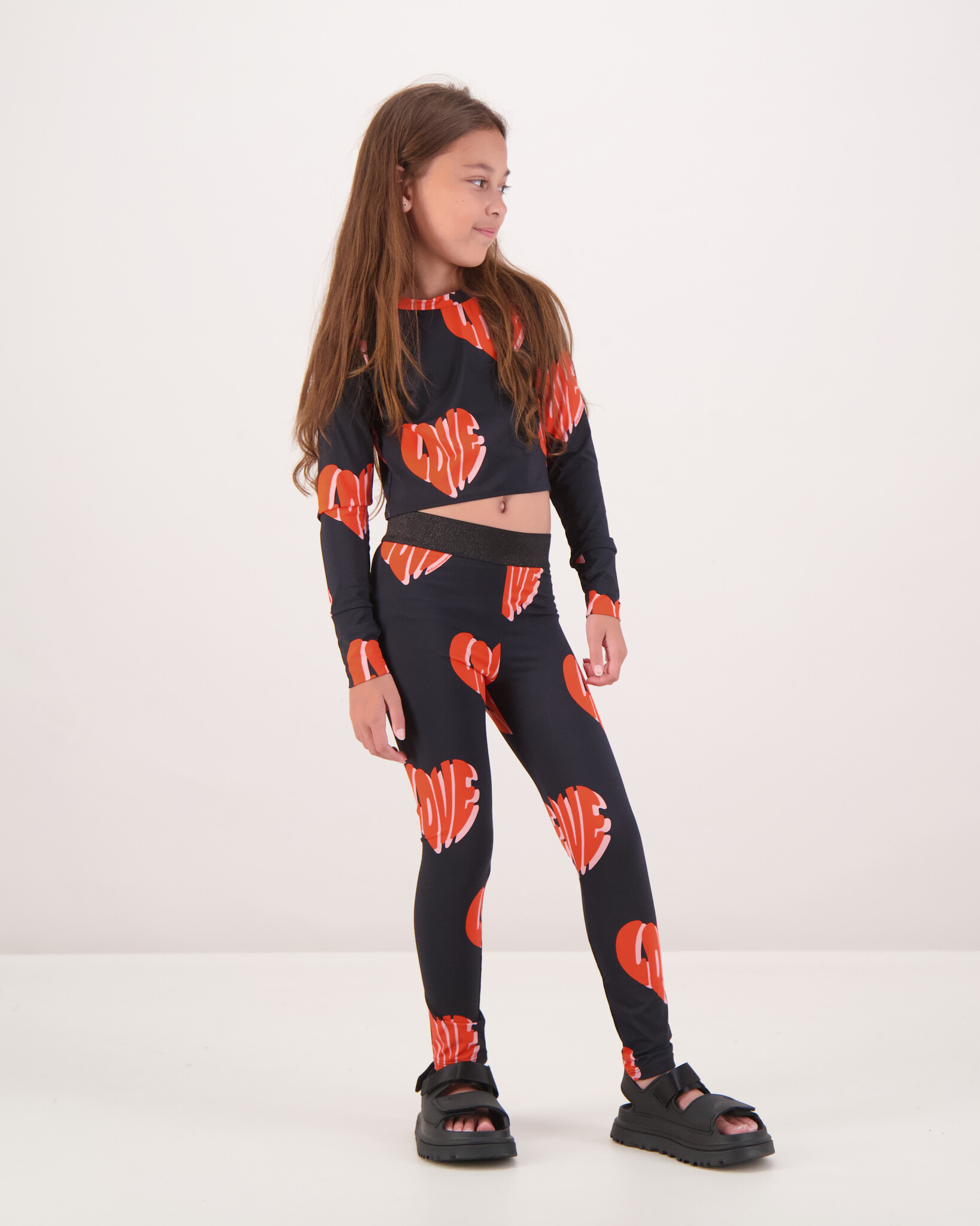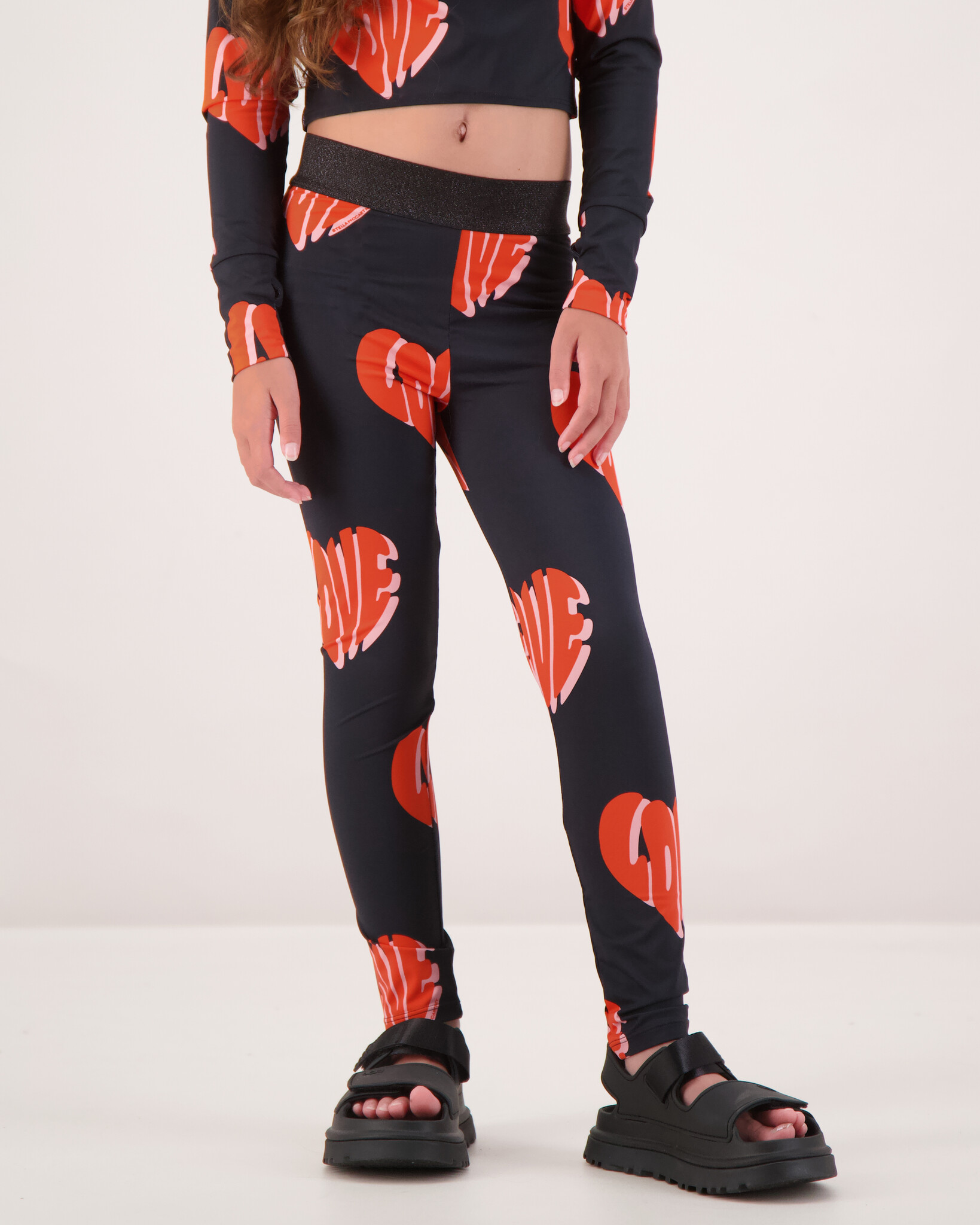 Trendy zwarte legging voor meisjes van Stella McCartney Kids, gemaakt van een comfortabele stretchstof. De all-over hartjesprint voegt een speelse touch toe, perfect voor elke gelegenheid.