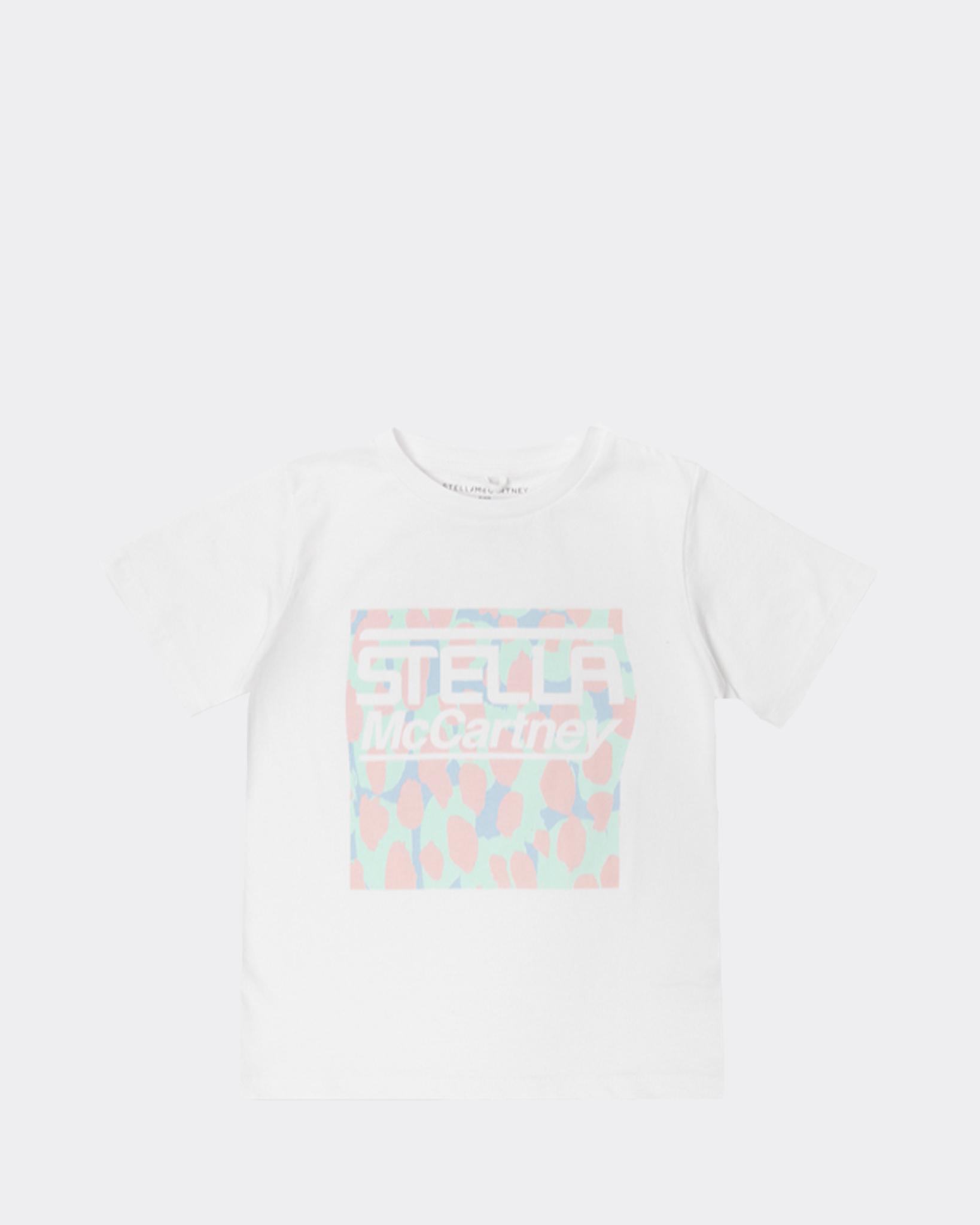 Wit T-shirt van Stella McCartney Kids met een rose blauwe panter print erop gedrukt met Stella McCartney. Het t-shirt is het heeft dezelfde print als de legging.