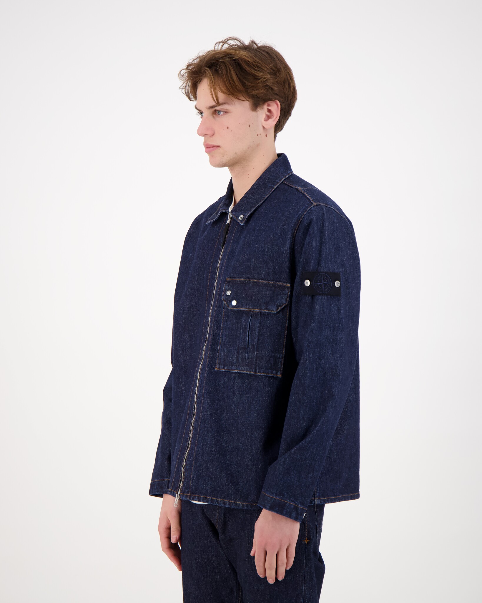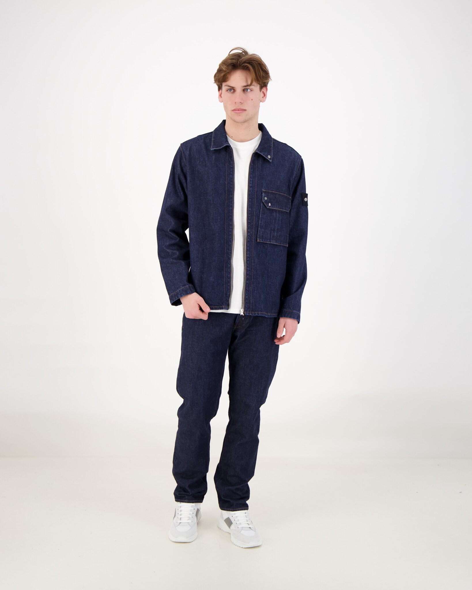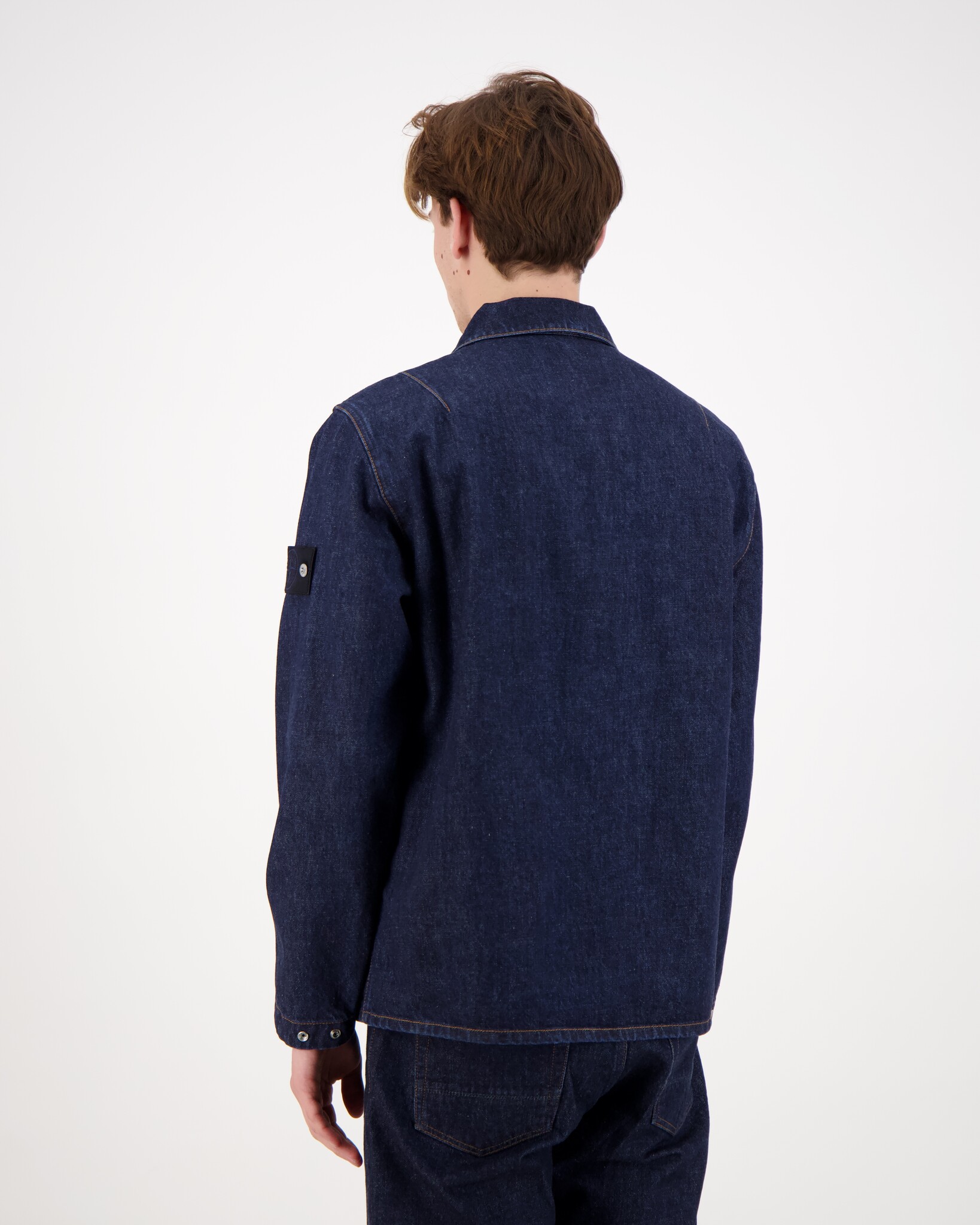 Blauwe 1200002 Denim-Rinsed Coach Jacket van het merk Stone Island. Coach jacket uitgevoerd in rinsed denim, wat zorgt voor een diepe kleur en een soepele, licht ingedragen feel. Het minimalistische ontwerp wordt gecombineerd met functionele details en de kenmerkende Stone Island-afwerking. Voorzien van een drukknoopsluiting, steekzakken en de iconische Compass Patch op de mouw.