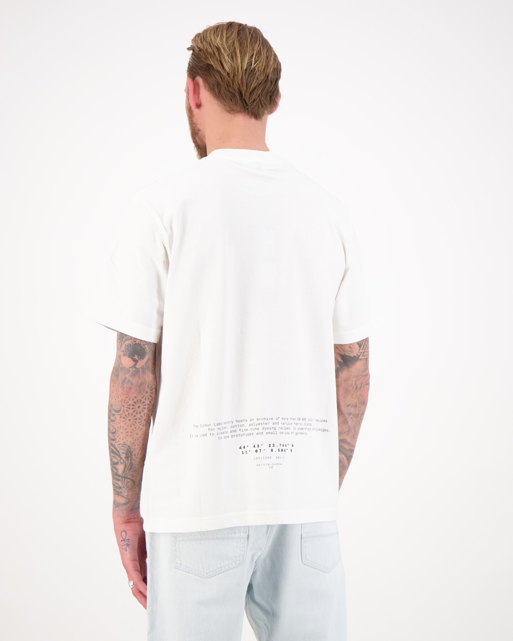 Witte 2100001 All Around Compass T-Shirt van het merk Stone Island. T-shirt met korte mouwen van katoen, voorzien van een Compass-logo op de borst en een opvallende tekst op de rug die verwijst naar het Stone Island Colour Laboratory. In de massa geverfd voor een diepe, rijke kleur en een unieke uitstraling.