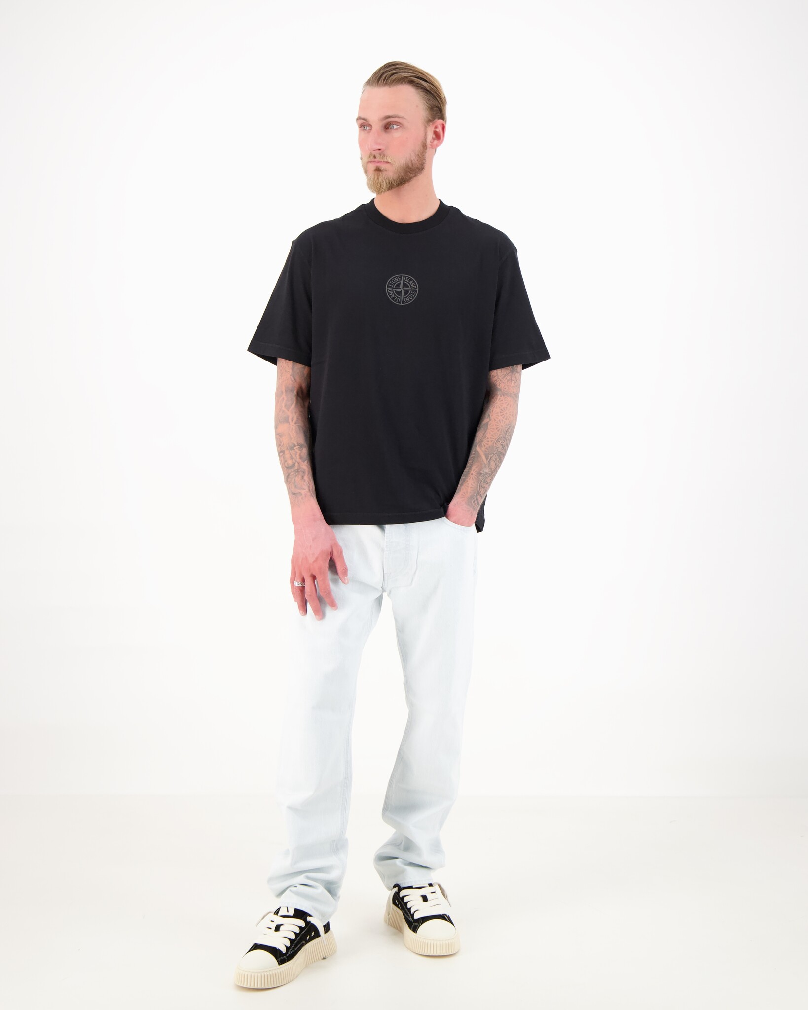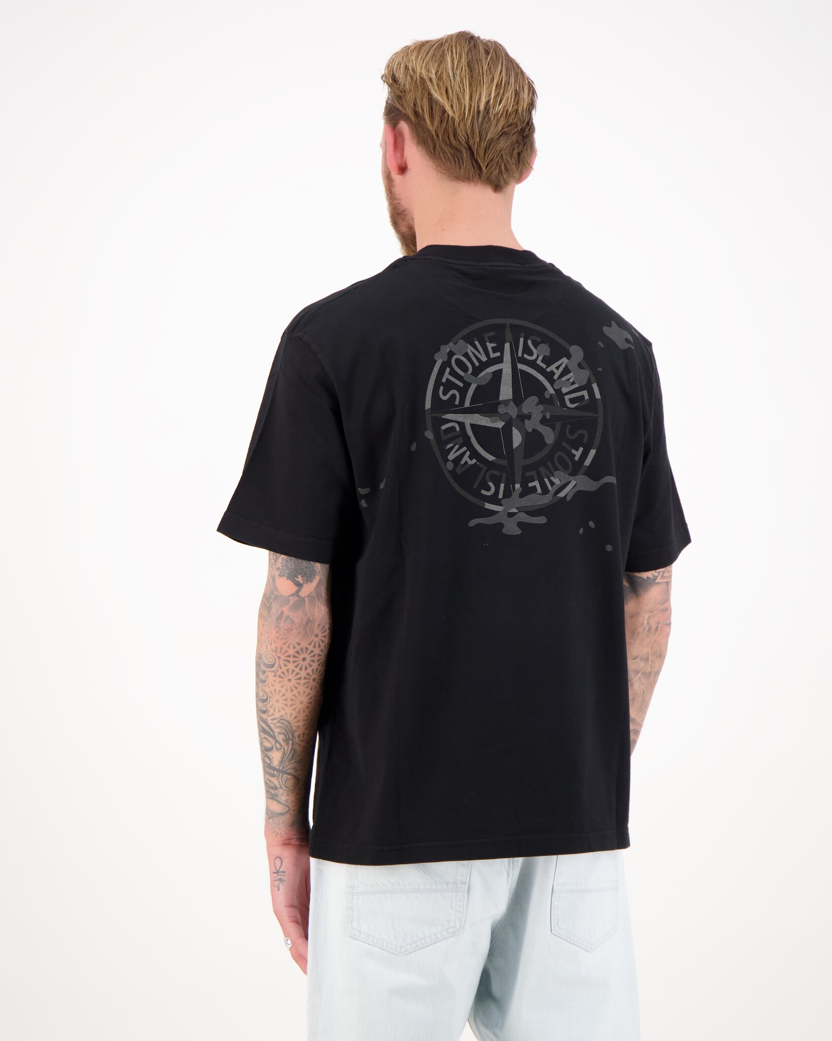 Iconisch T-shirt van Stone Island, uitgevoerd in hoogwaardig 100% katoen voor optimaal comfort en een luxe uitstraling. Het model heeft een regular fit en een klassieke ronde hals, wat zorgt voor een tijdloze en veelzijdige look. Het T-shirt is voorzien van het herkenbare Compass logo op de borst en een grotere print op de rug, wat zorgt voor een opvallende en moderne uitstraling. Perfect als statement piece binnen een casual of streetwear outfit.