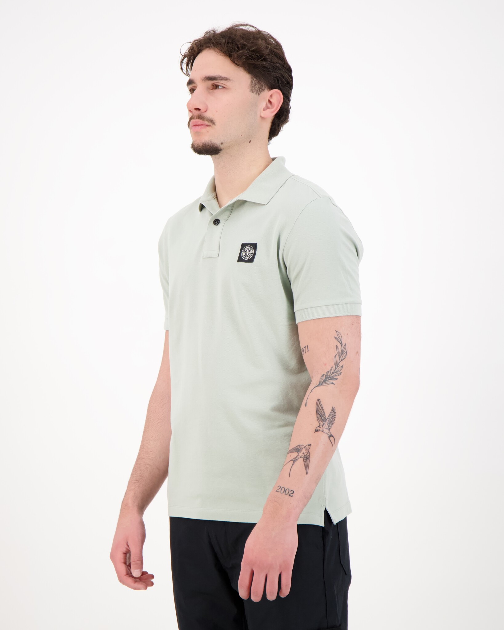 Sage 2200008 Pique Polo van het merk Stone Island. Polo met korte mouwen van biologisch katoen en elastaan, de polo sluit met twee knopen.