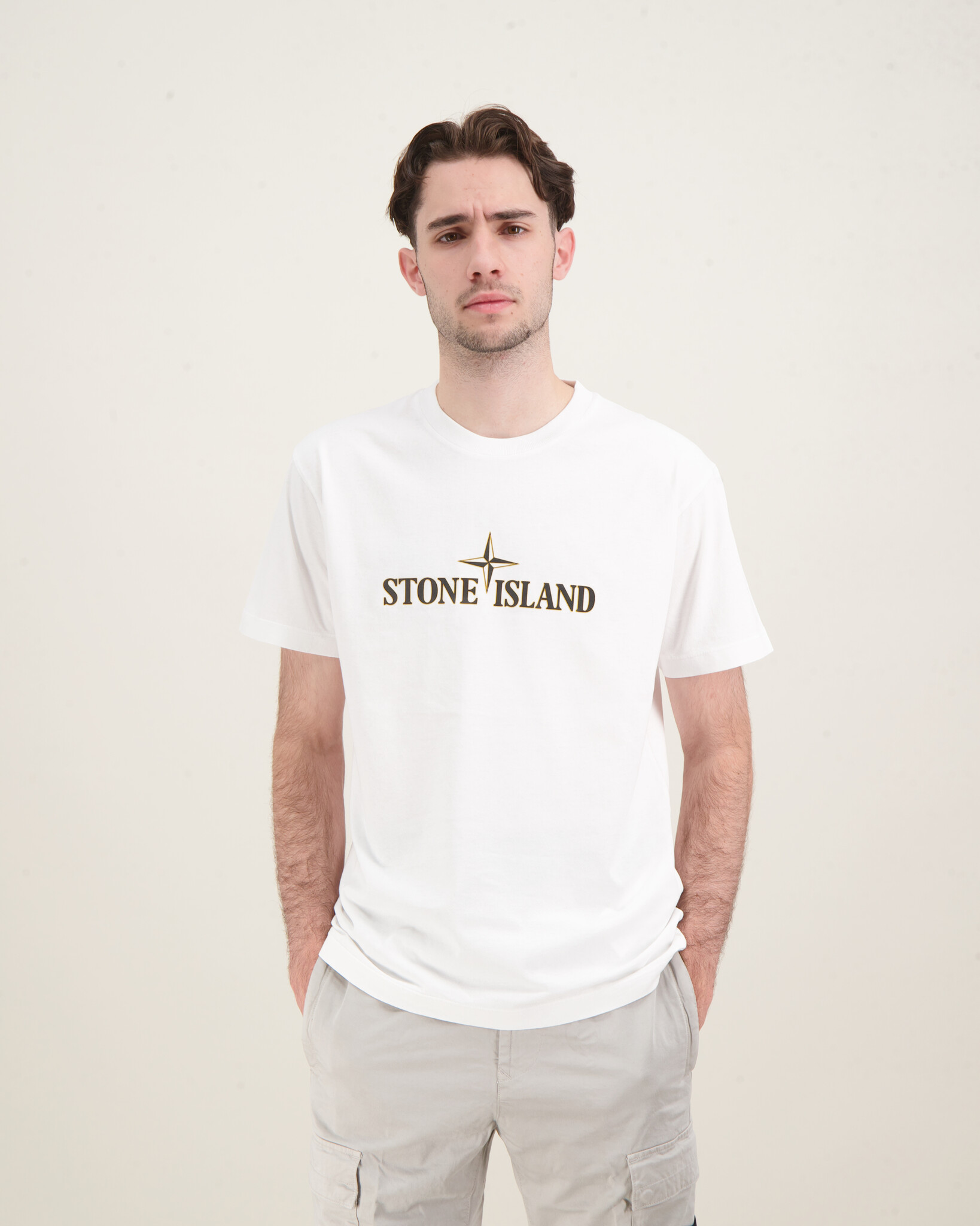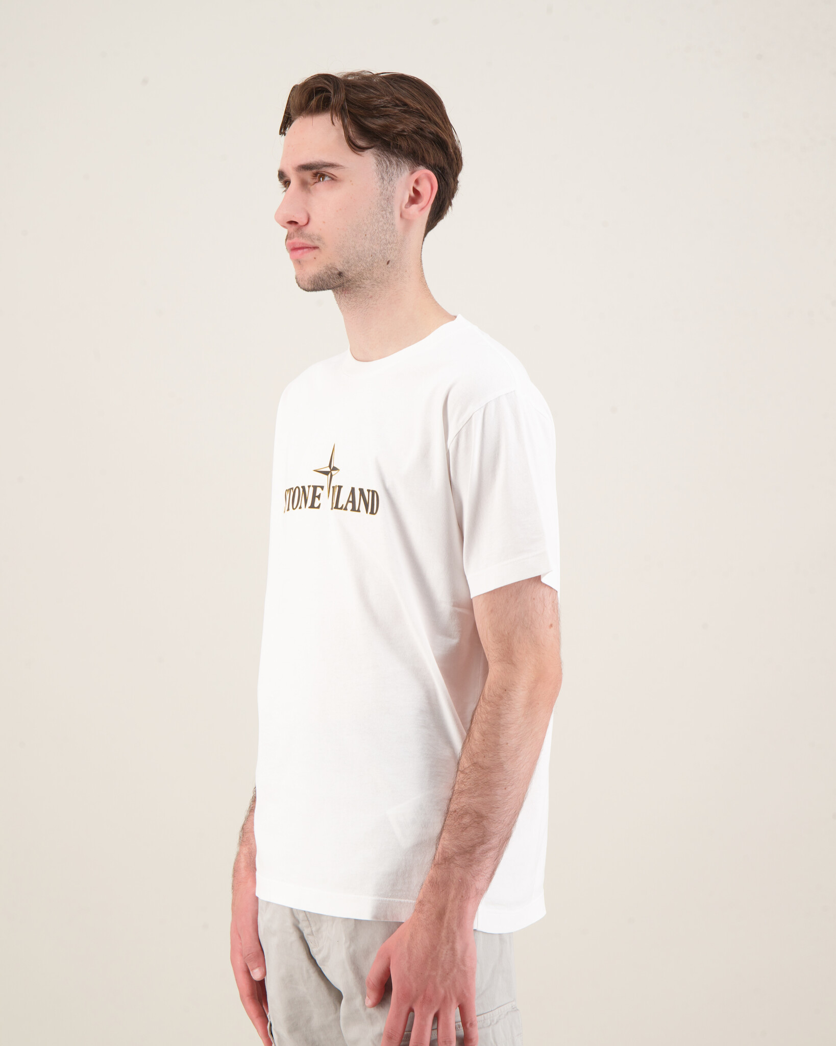 Wit 2NS80 Logo T-Shirt van het merk Stone Island. Het T-Shirt heeft een ronde hals en korte mouw op de linker borst het bekende Stone-Island logo.