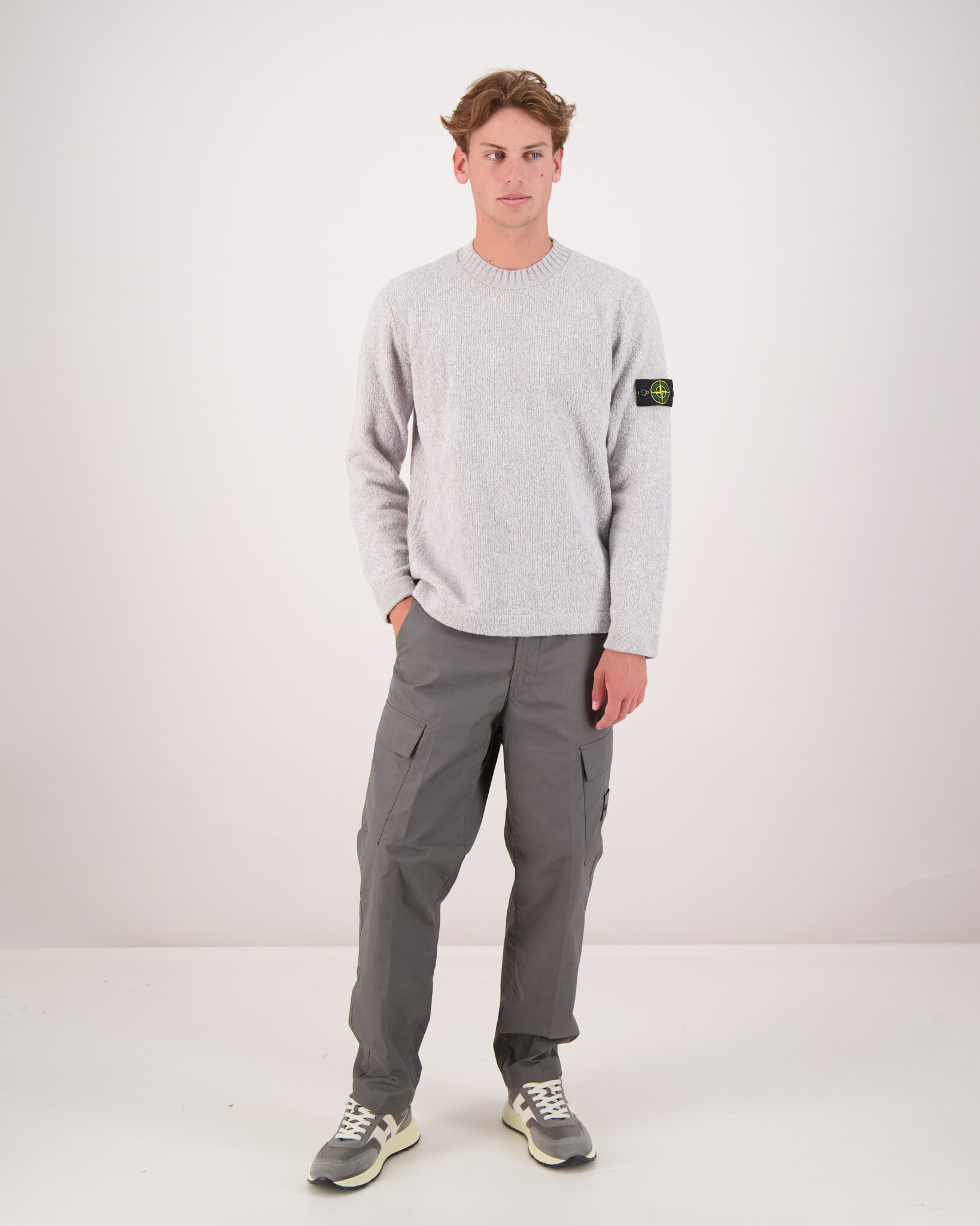 Donker Grijze 5100056 Fancy Yarn Crewneck Sweater van het merk Stone Island. Gebreide crewneck-trui van wol-nylonmix met een geborstelde textuur.