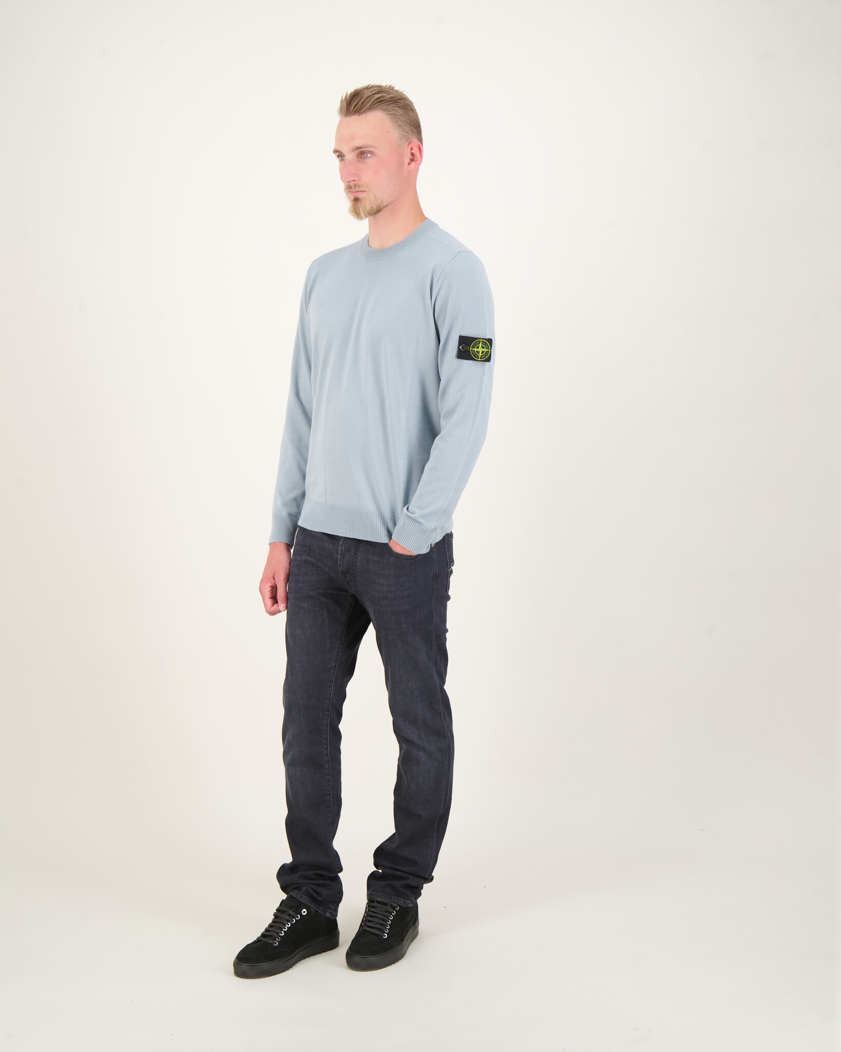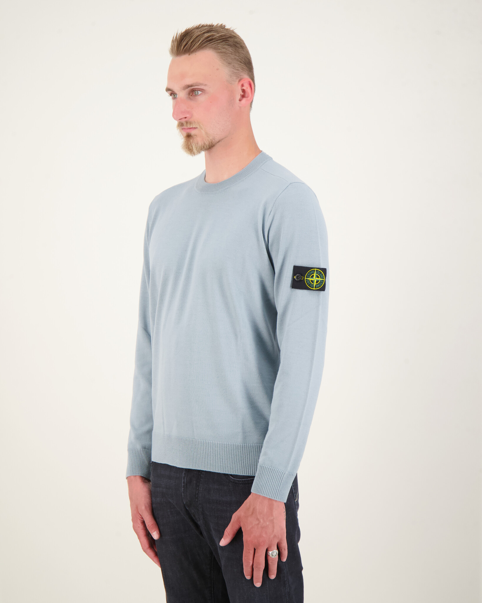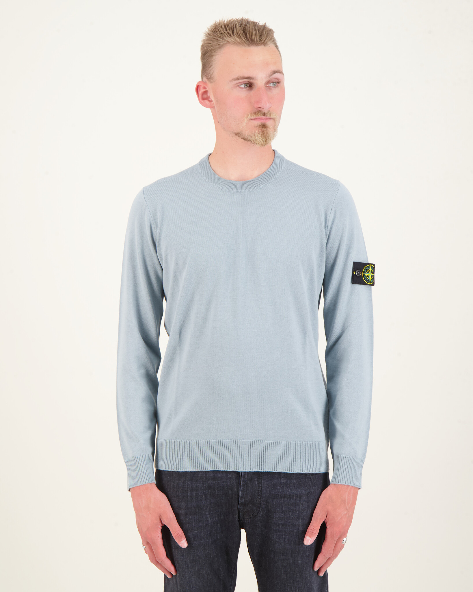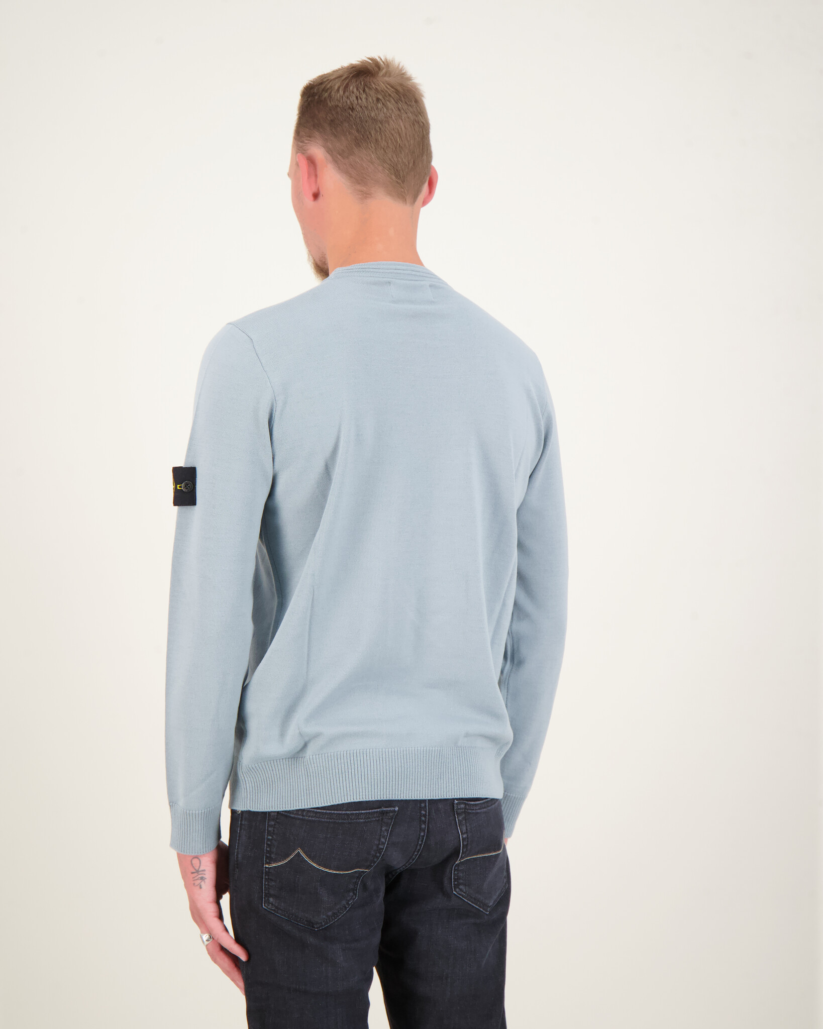 M.blauw 510C4 Maglia Knitwear Sweater van het merk Stone Island. De sweater heeft het bekende stone island logo op de linkermouw.