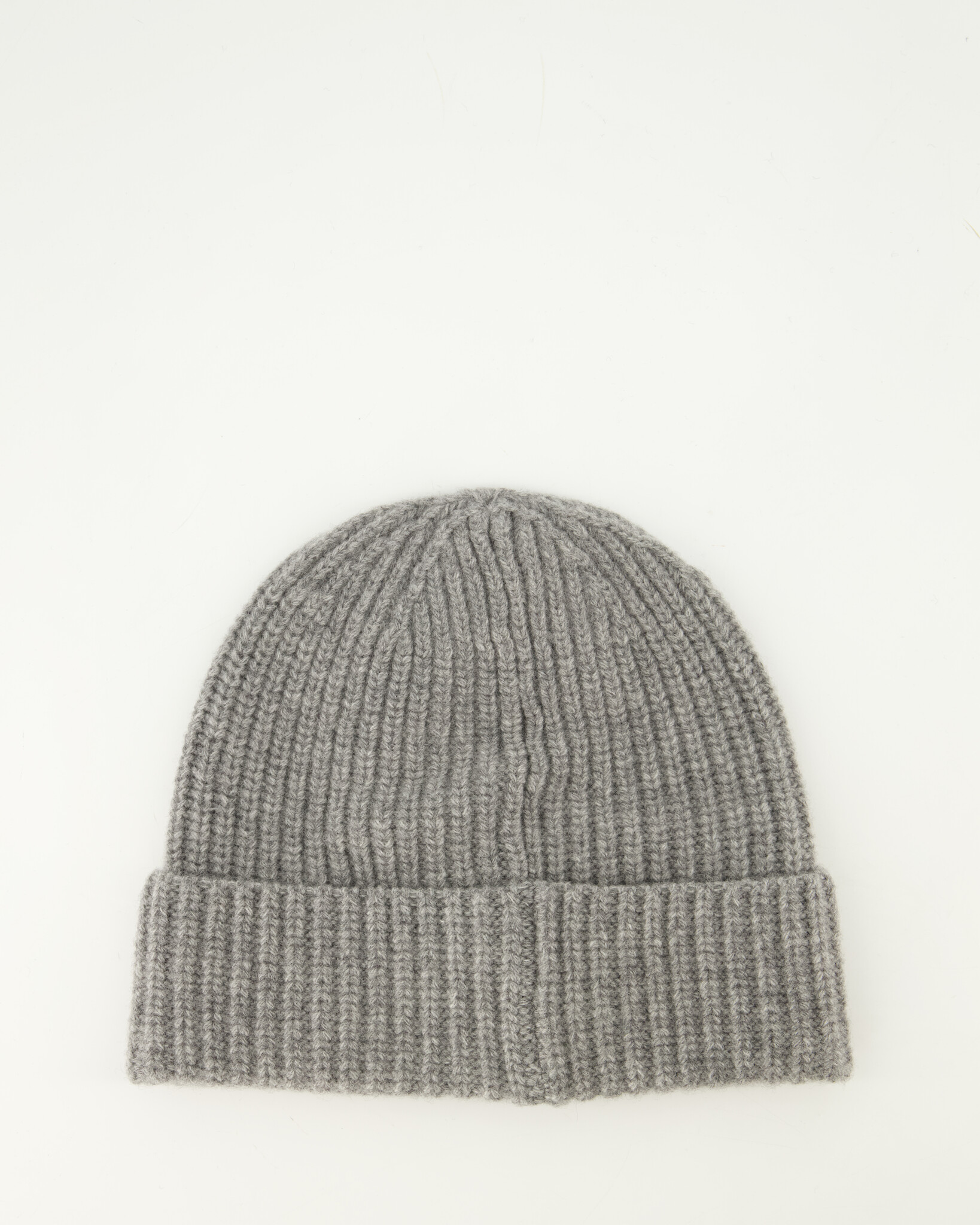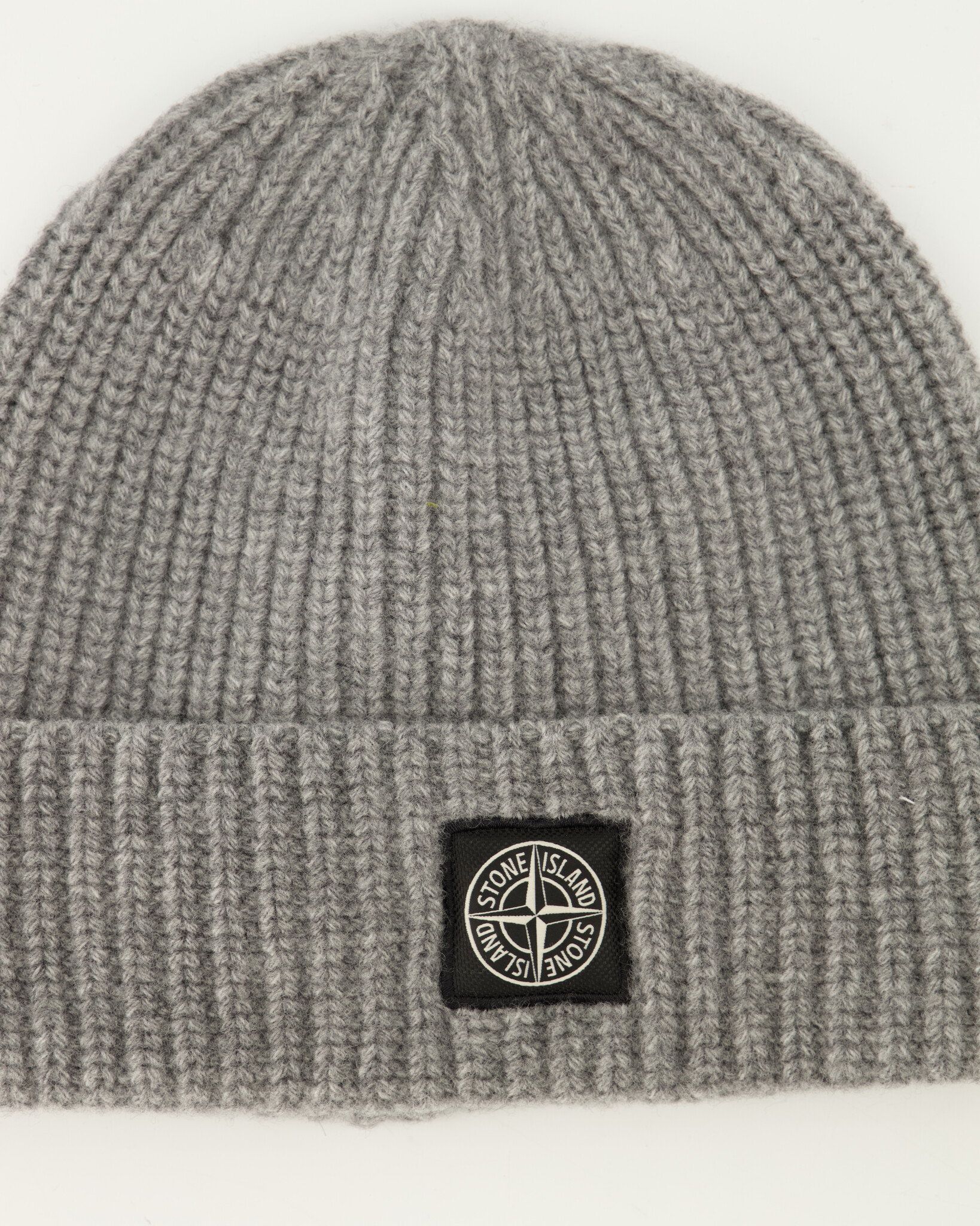 Grijze 5N100012 Beanie van het merk Stone Island. De beanie heeft op de voorkant het bekende stone island logo.