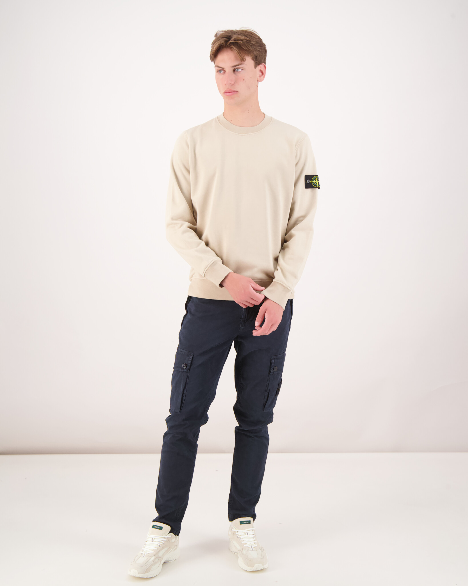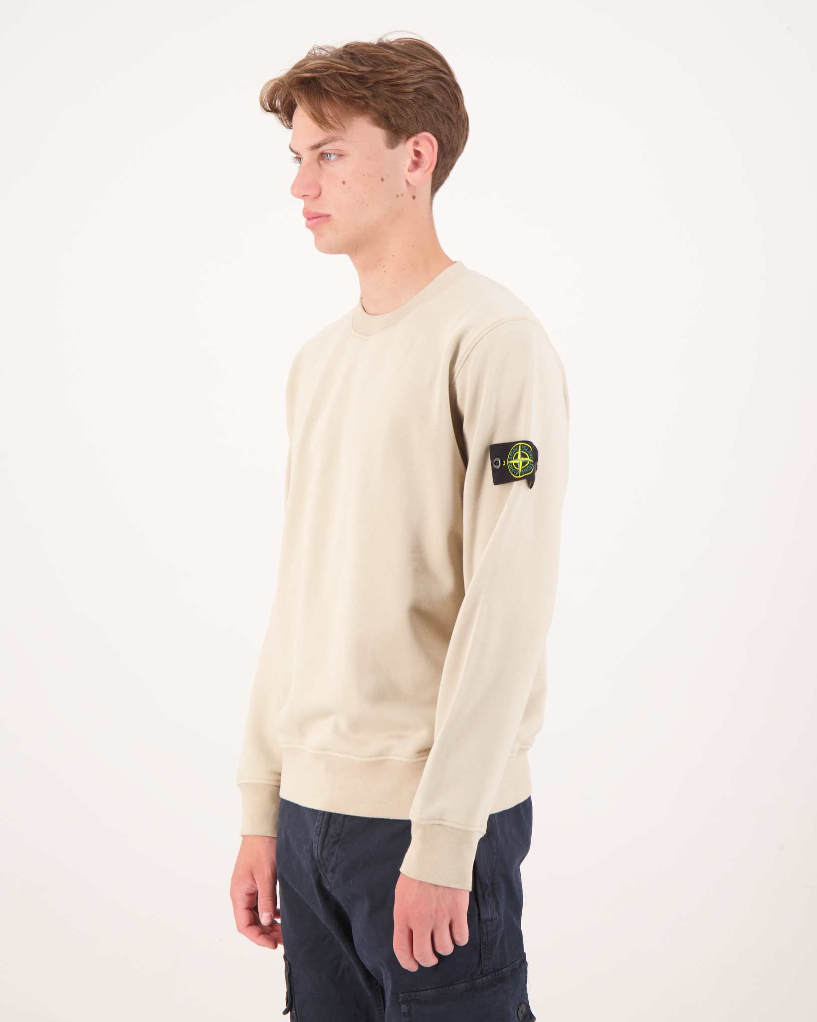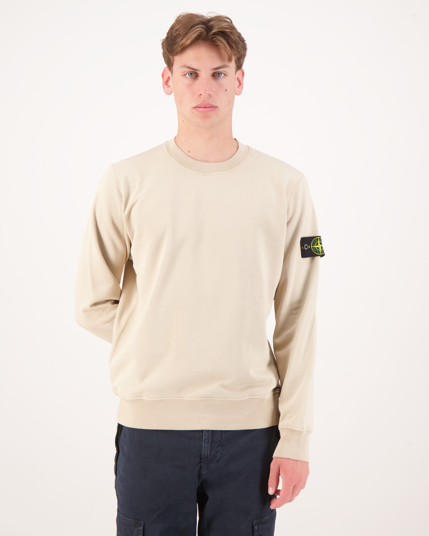 Sand 6100060 Organic Cotton Fleece Sweater van het merk Stone Island. Sweater met ronde hals van fleece van biologisch katoen, met overlocknaden, een lunette met binnenvoering en elastische geribde boorden. Kledingstuk geverfd.