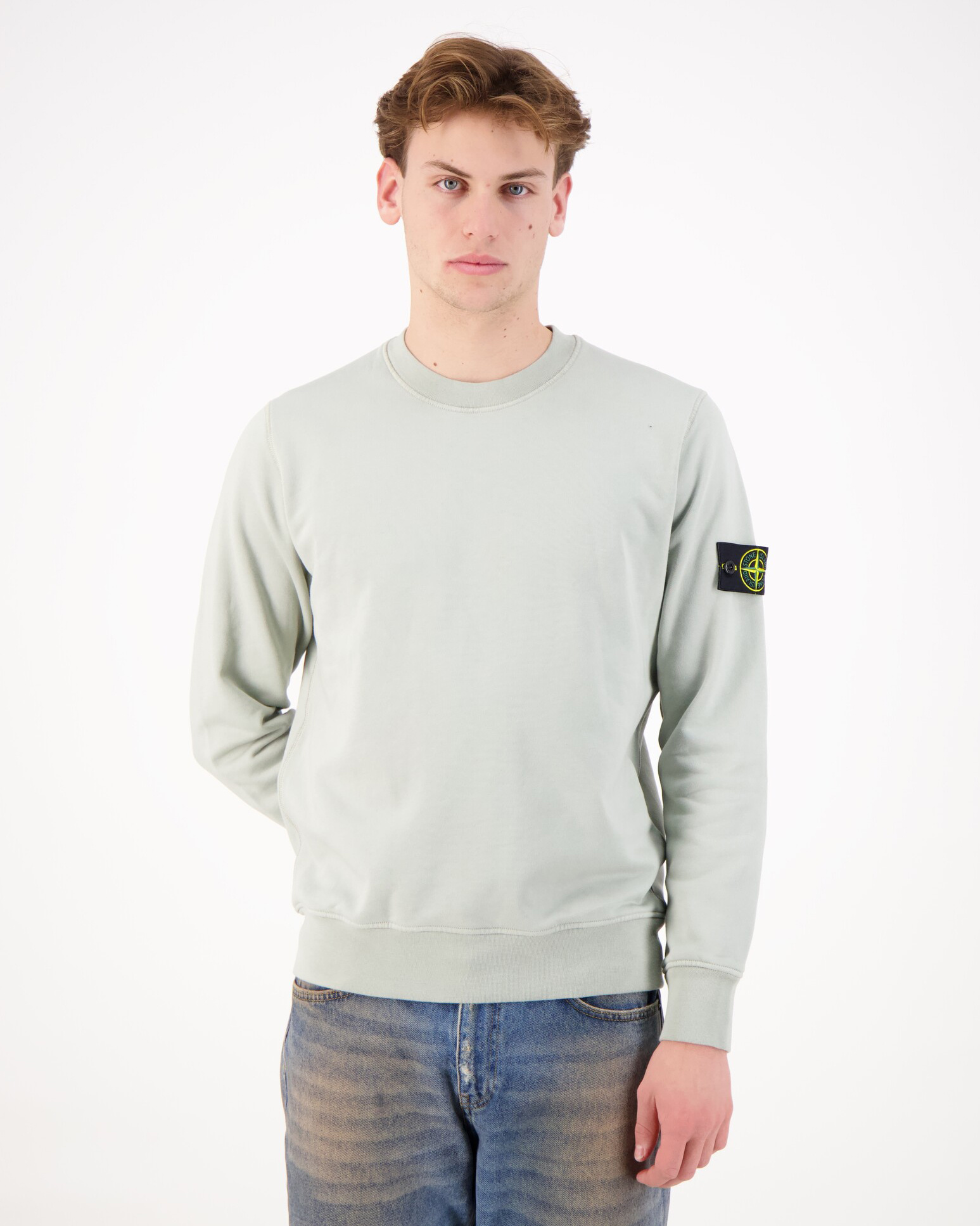 Sage 6100060 Organic Cotton Fleece Sweater van het merk Stone Island. Sweater met ronde hals van fleece van biologisch katoen, met overlocknaden, een lunette met binnenvoering en elastische geribde boorden. Kledingstuk geverfd.