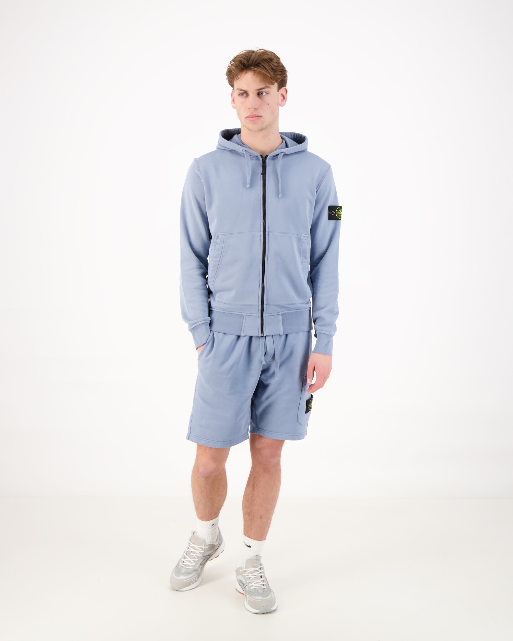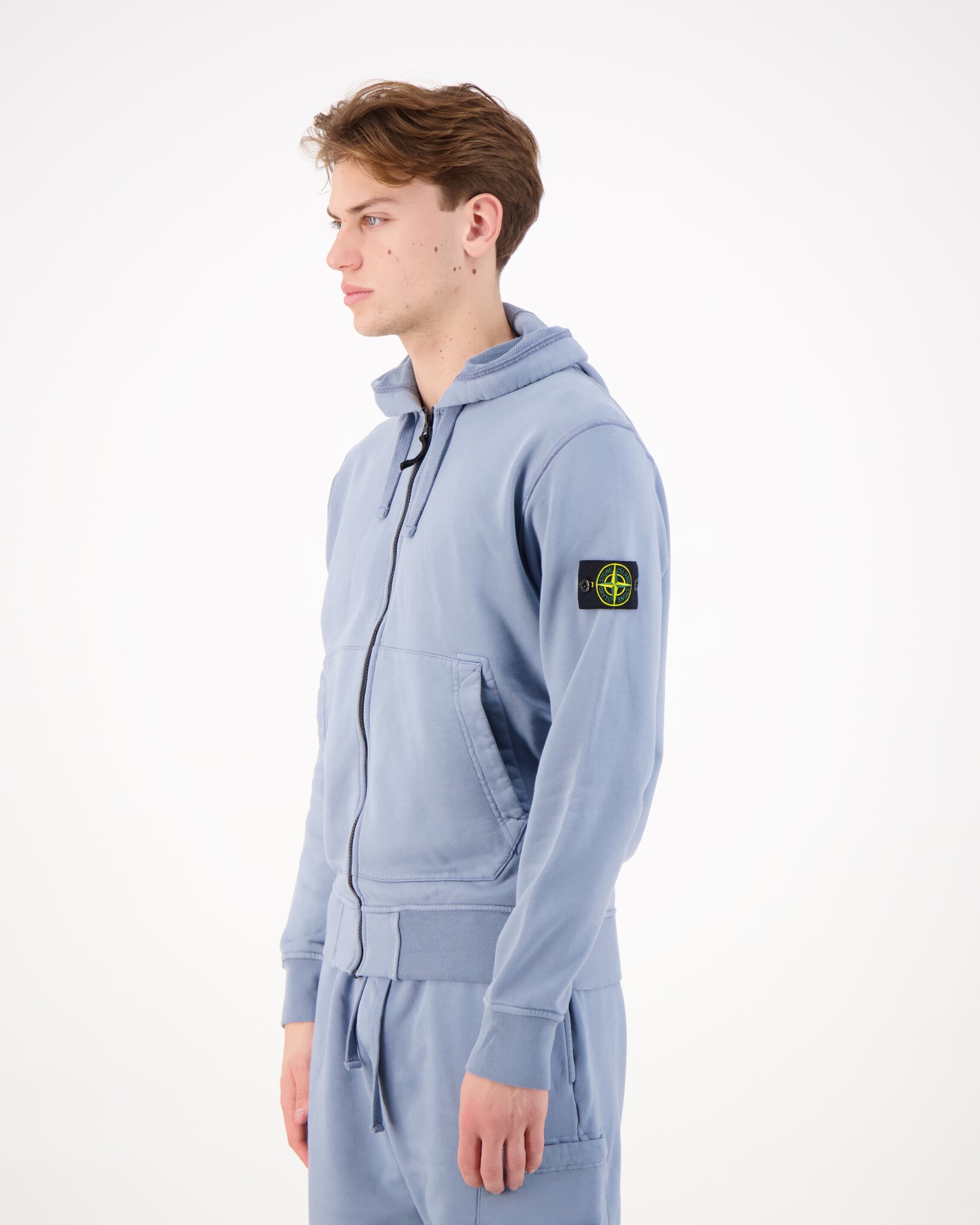 6100061 Capuchon Vest van het merk Stone Island. Comfort ontmoet stijl in dit hoogwaardige zip-up sweatshirt met capuchon, vervaardigd uit zachte fleece van 100% katoen. Het kledingstuk is geverfd wat zorgt voor een unieke, levendige kleur en een subtiele, gedragen look. Als kenmerkend accent prijkt het Stone Island-logo op de linker mouw.