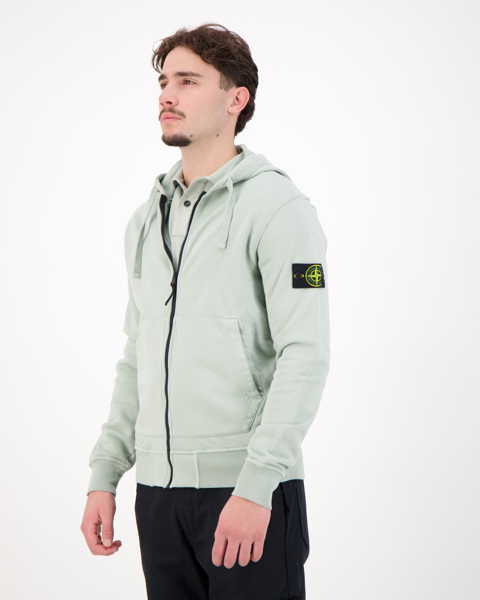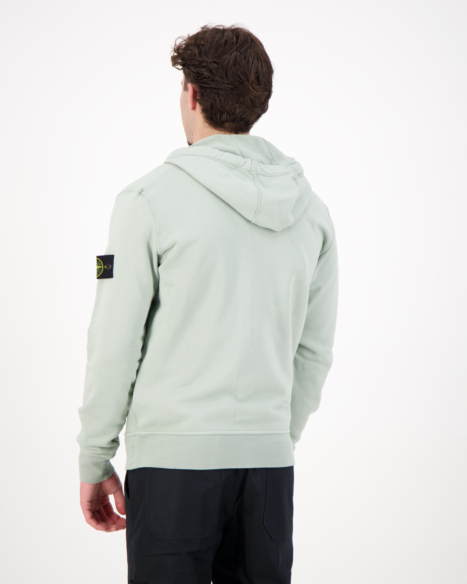 Sage 6100061 Organic Cotton Fleece Hoodie Zip-up van het merk Stone Island. Vervaardigd uit hoogwaardig katoen fleece. De stof voelt zacht aan en heeft een comfortabele midweight dikte, ideaal voor dagelijks gebruik in elk seizoen. Dankzij de garment-dyed afwerking krijgt de hoodie een diepe kleur en subtiele, gewassen look.