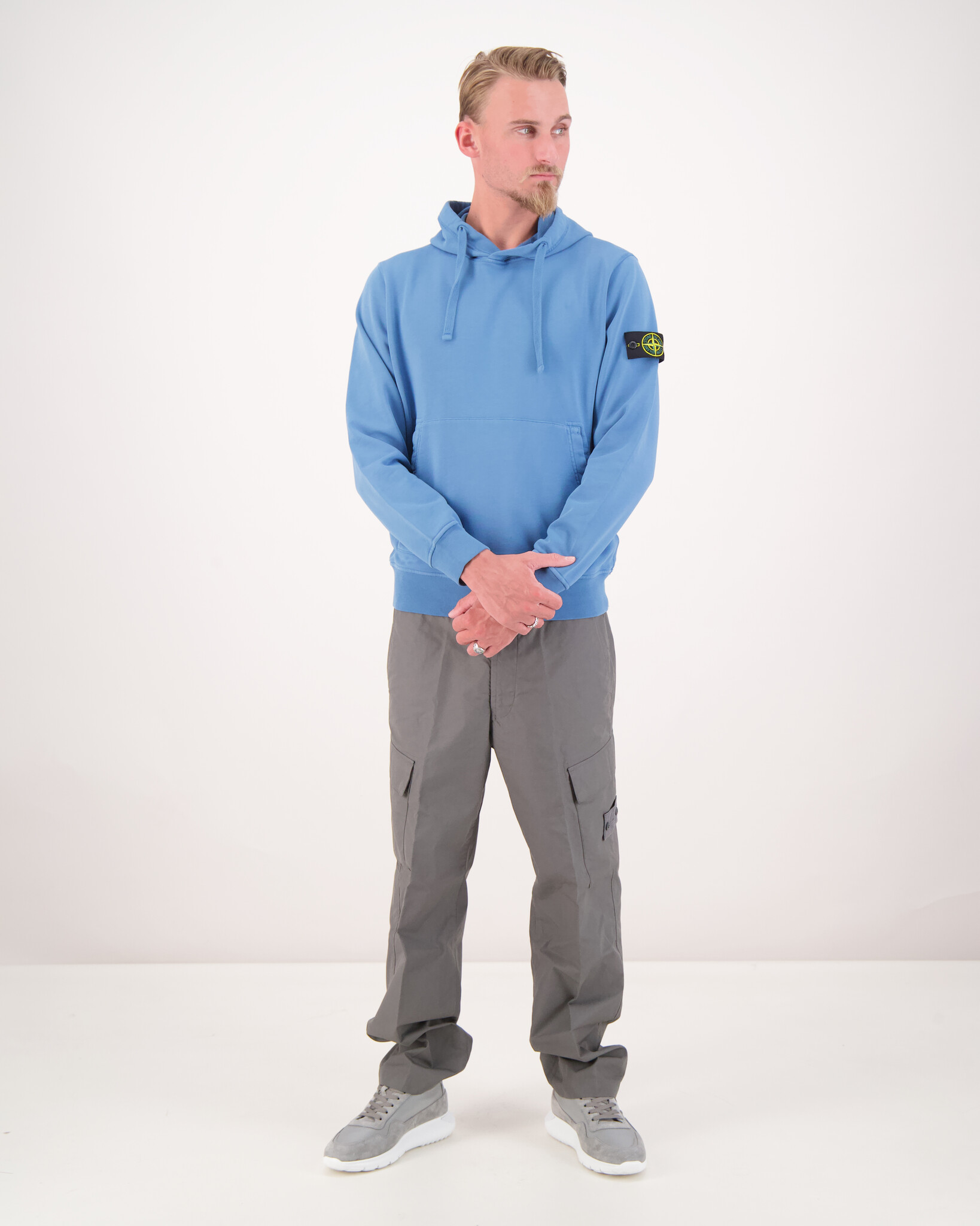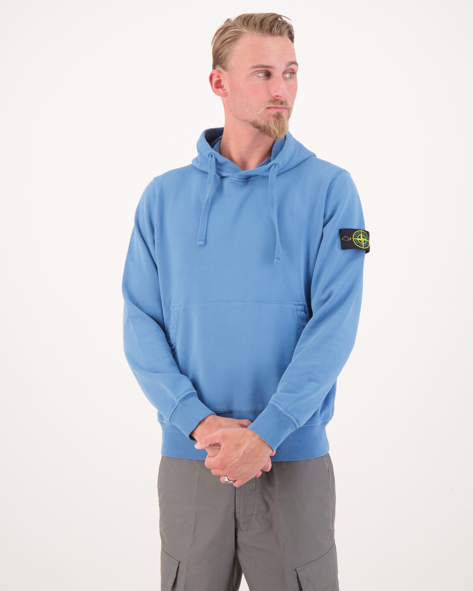 Blauwe 6100062 Fleece Hoodie van het merk Stone Island. Sweatshirt met capuchon van biologisch katoenfleece met overlocknaden, een zak met schuine ingangen en elastische geribde boorden. Geverfd in het geheel.