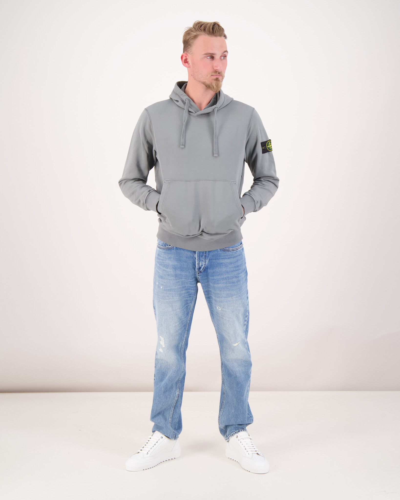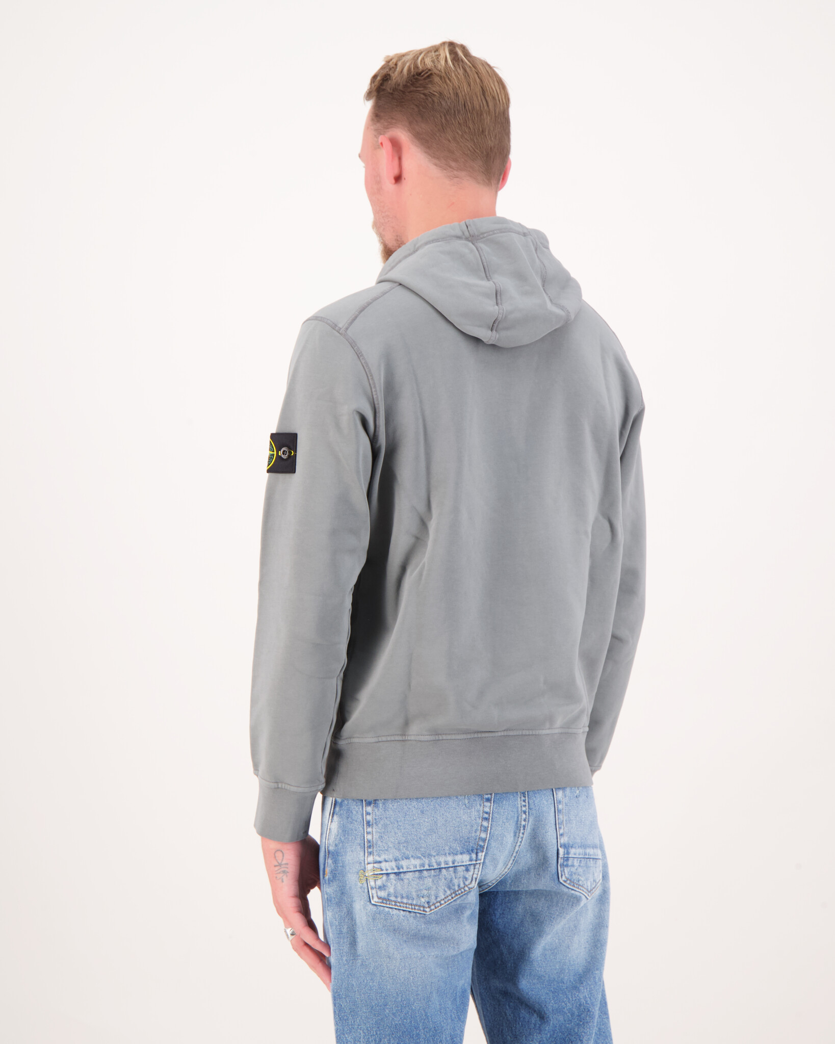 Grijze 6100062 Fleece Hoodie van het merk Stone Island. Sweatshirt met capuchon van biologisch katoenfleece met overlocknaden, een zak met schuine ingangen en elastische geribde boorden. Geverfd in het geheel.