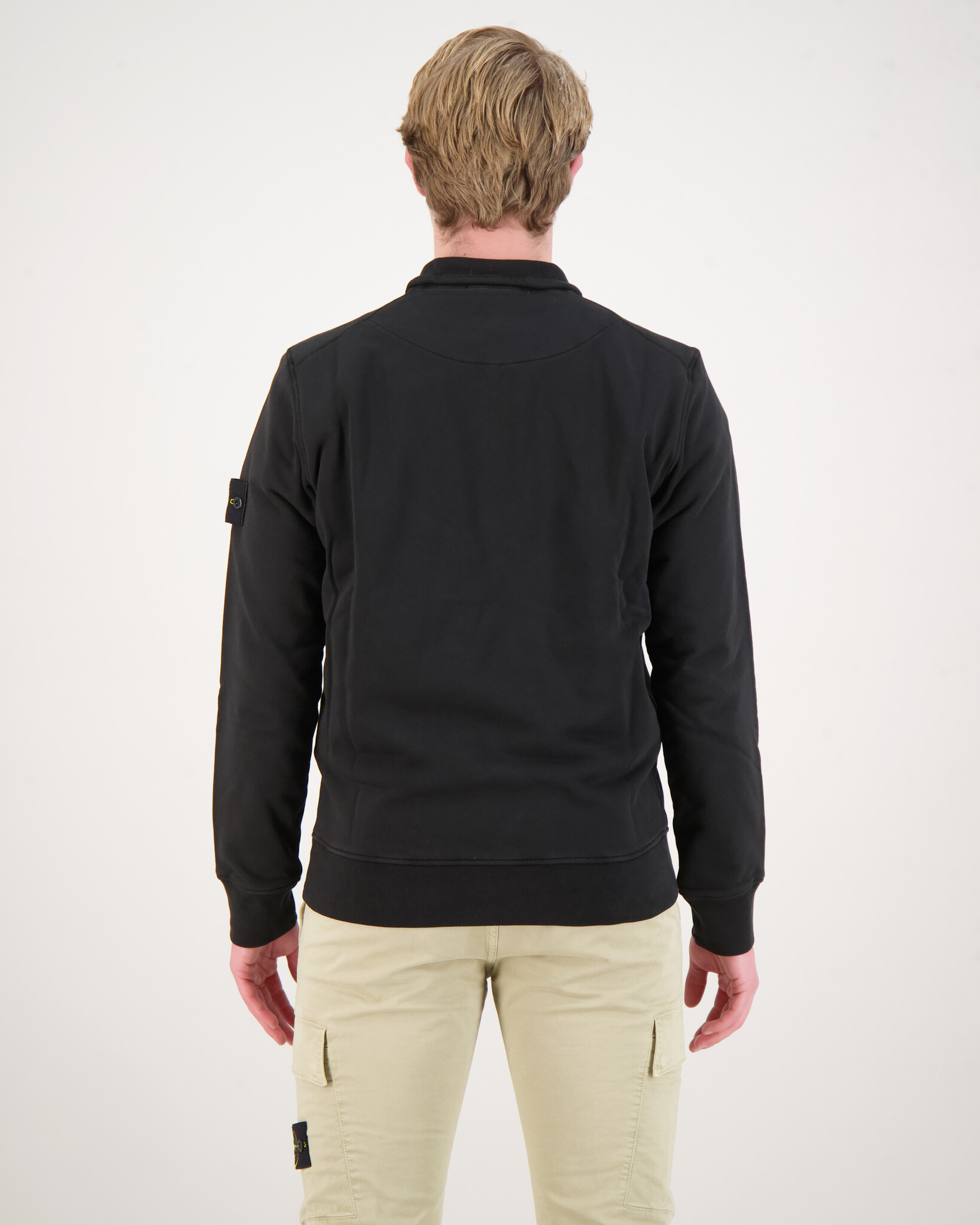 Zwarte 61951 Felpa Half Zip Sweater van het merk Stone Island. De trui heeft een openstaande kraag en een zwarte rits. Op de linkermouw staat het bekende Stone Island-logo weergeven.