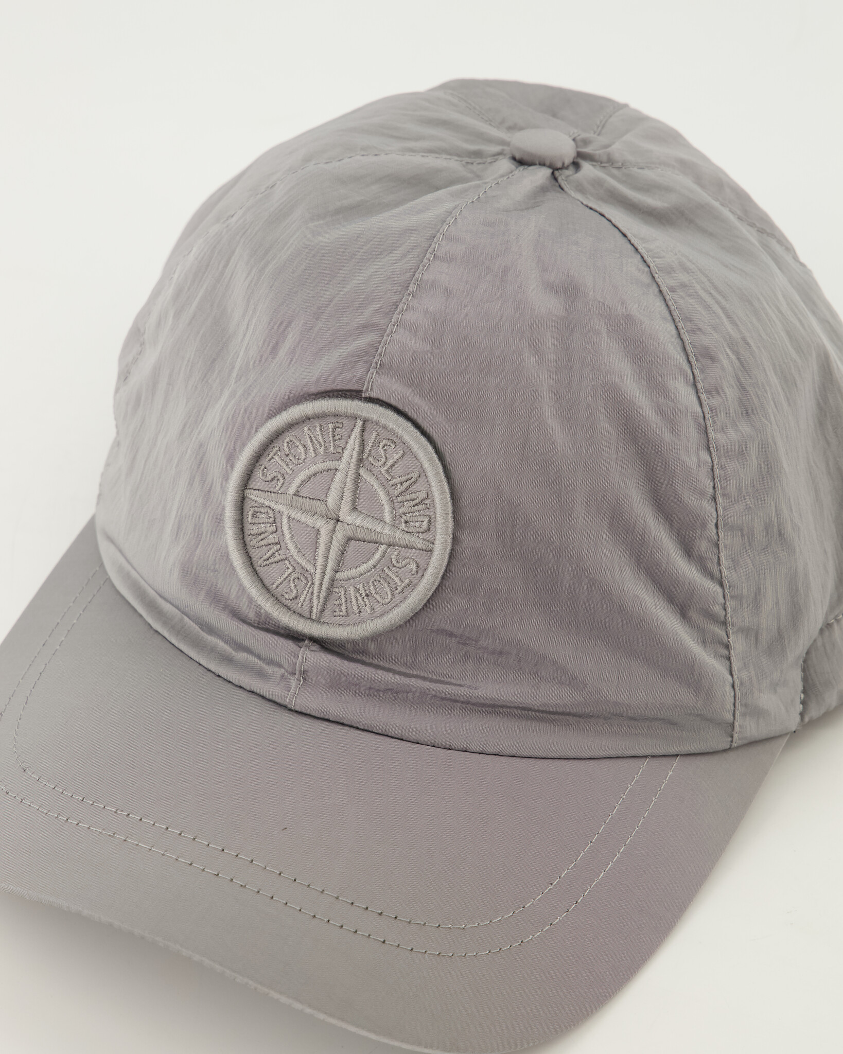 Grijze 9100011 Nylon Metal In Econyl Baseball Cap van het merk Stone Island. Voorzien van het subtiel opgehoogde Compass-logo aan de voorkant, combineert de cap Stone Island’s herkenbare branding met een minimalistisch design . De achterzijde is verstelbaar met een elastisch trekkoord en toggle, zodat je een perfecte pasvorm creëert