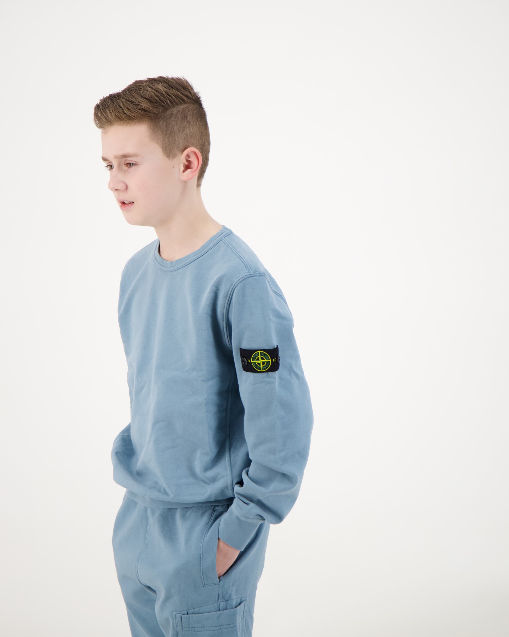 Powder Blue 6100005 Organisch Katoenen Sweatshirt van Stone Island Junior. Deze Stone Island Junior sweater is dé perfecte mix van streetwear en luxe voor de jongere trendsetters. Gemaakt van hoogwaardige materialen met oog voor detail, biedt deze trui ultiem draagcomfort én een stijlvolle look. De iconische afneembare kompaspatch op de mouw maakt het helemaal af. Of het nu voor school is of een casual dagje uit. Met deze sweater straalt jouw kind zelfvertrouwen én fashion gevoel uit.