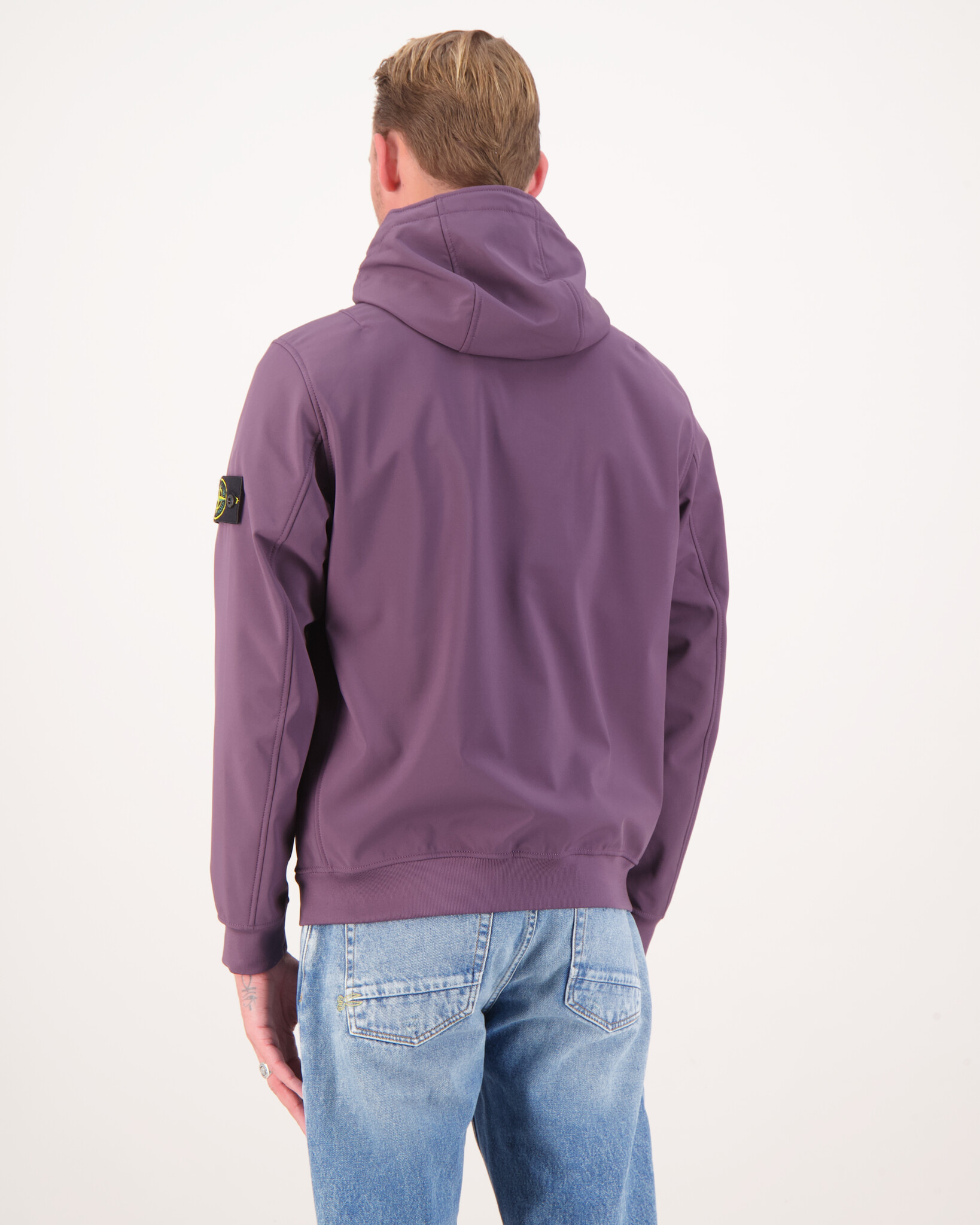 Bordeaux 'Q100004 Soft Shell Light hooded Jas' van het merk Stone Island. Licht jack met capuchon van 3-laags materiaal met een waterkolom van 8000 MM. De buitenkant van 100% gerecycled polyester stretchcanvas is geweven met garens die gebruikmaken van de e.dye® Waterless Color System™-technologie, het innovatieve kleurverzadigingssysteem van garens dat het gebruik van water met 85% vermindert en het gebruik van chemicaliën in het verfproces met 90% terugdringt. De stof is gelamineerd op een ademend, wind- en waterafstotend binnenmembraan, beschermd door een polyester poolrug. De