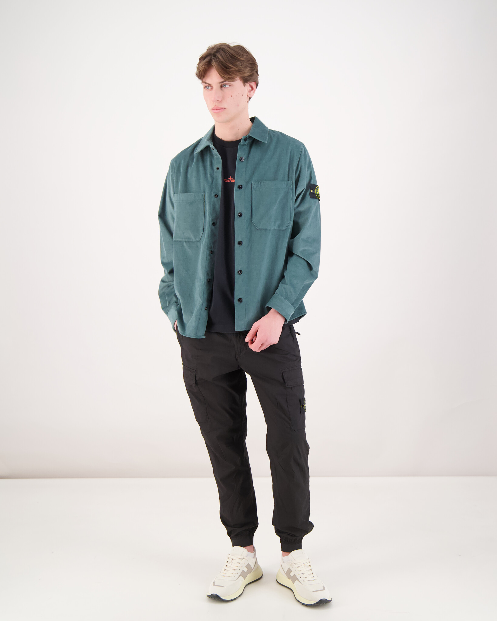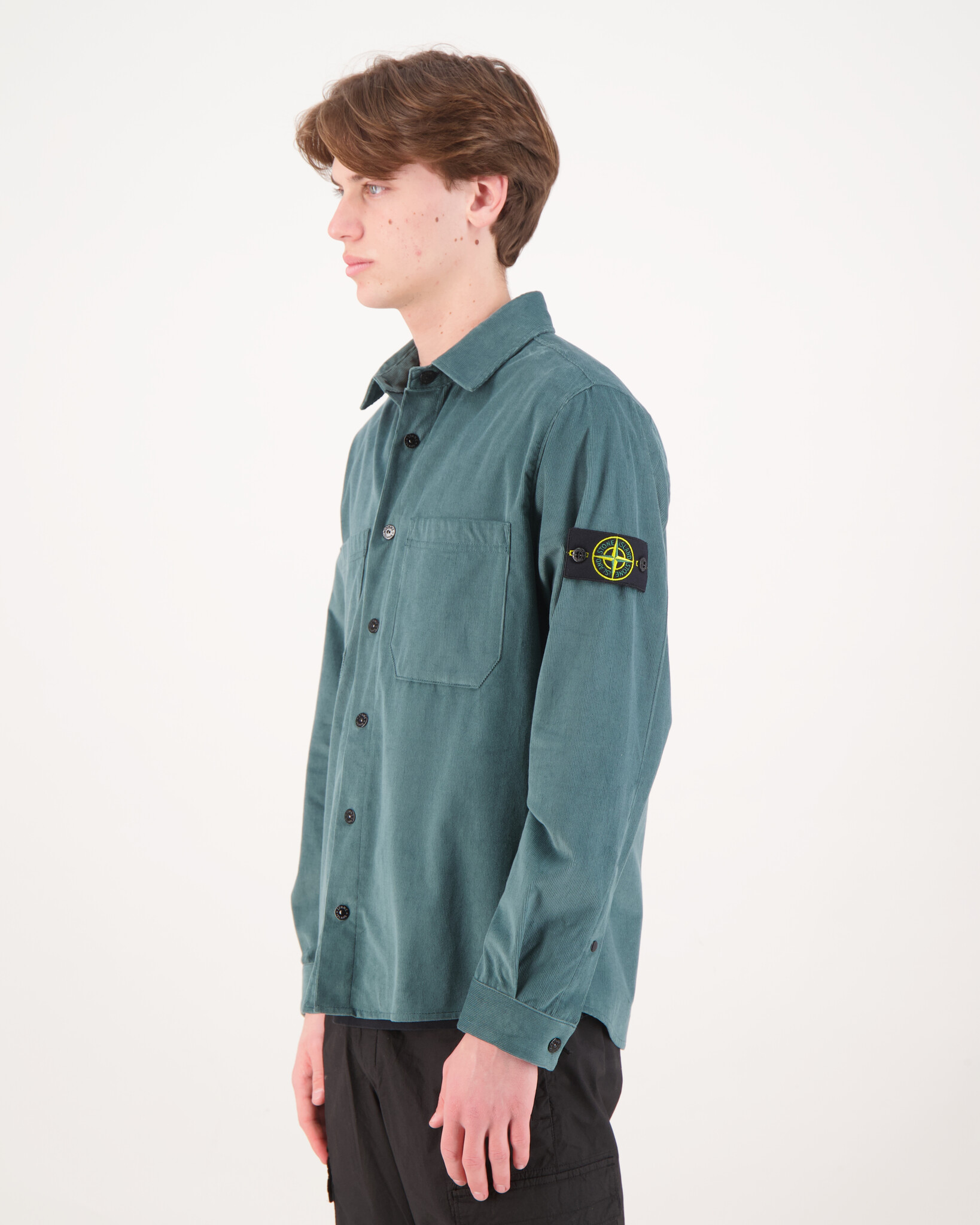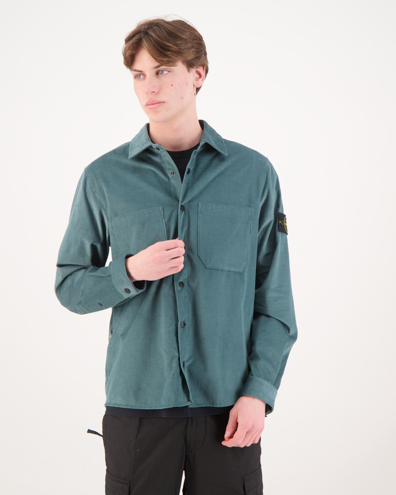 Groene S0144 Overshirtvan het merk Stone Island. Overshirt van katoenen micro-corduroy met twee borstzakken, drukknopen op de mouwen en een drukknoopsluiting.