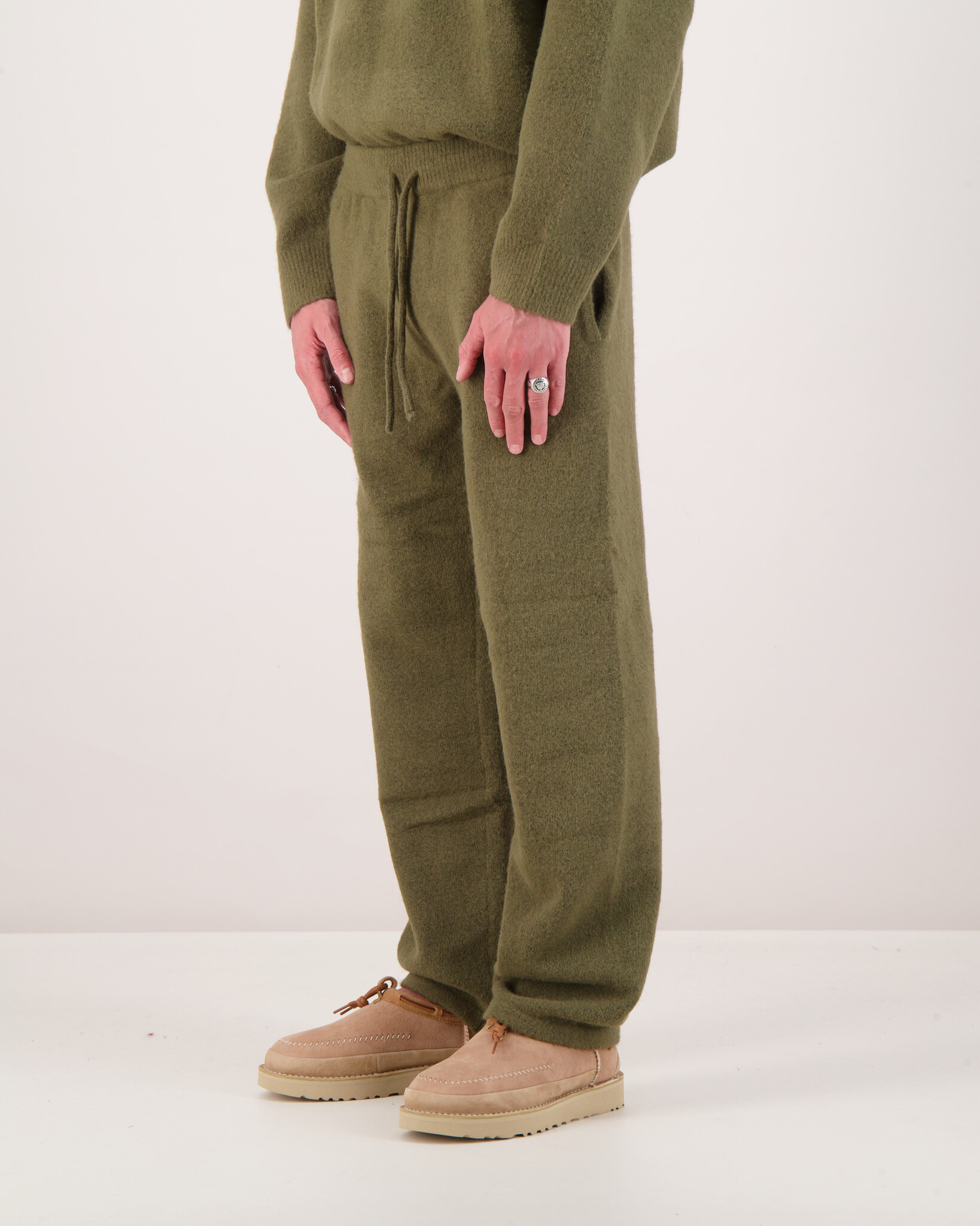 Khaki Monogram Emblem Fluffy Knit Zip van het merk The Couture Club. De “fluffy knit” textuur geeft de broek een zachtere, cosy uitstraling — ideaal voor casual of “elevated casual” looks. Op de rechterbeen zit een “jacquard fluffy knit monogram emblem graphic” (oftewel een ingebreid monogram-embleem in dezelfde fluffy stijl). Geribde boorden aan mouwuiteinden en onderkant. De pasvorm is “relaxed” — dus niet strak/slim fit, maar met wat meer ruimte. Dit betekent dat hij comfortabeler zit.