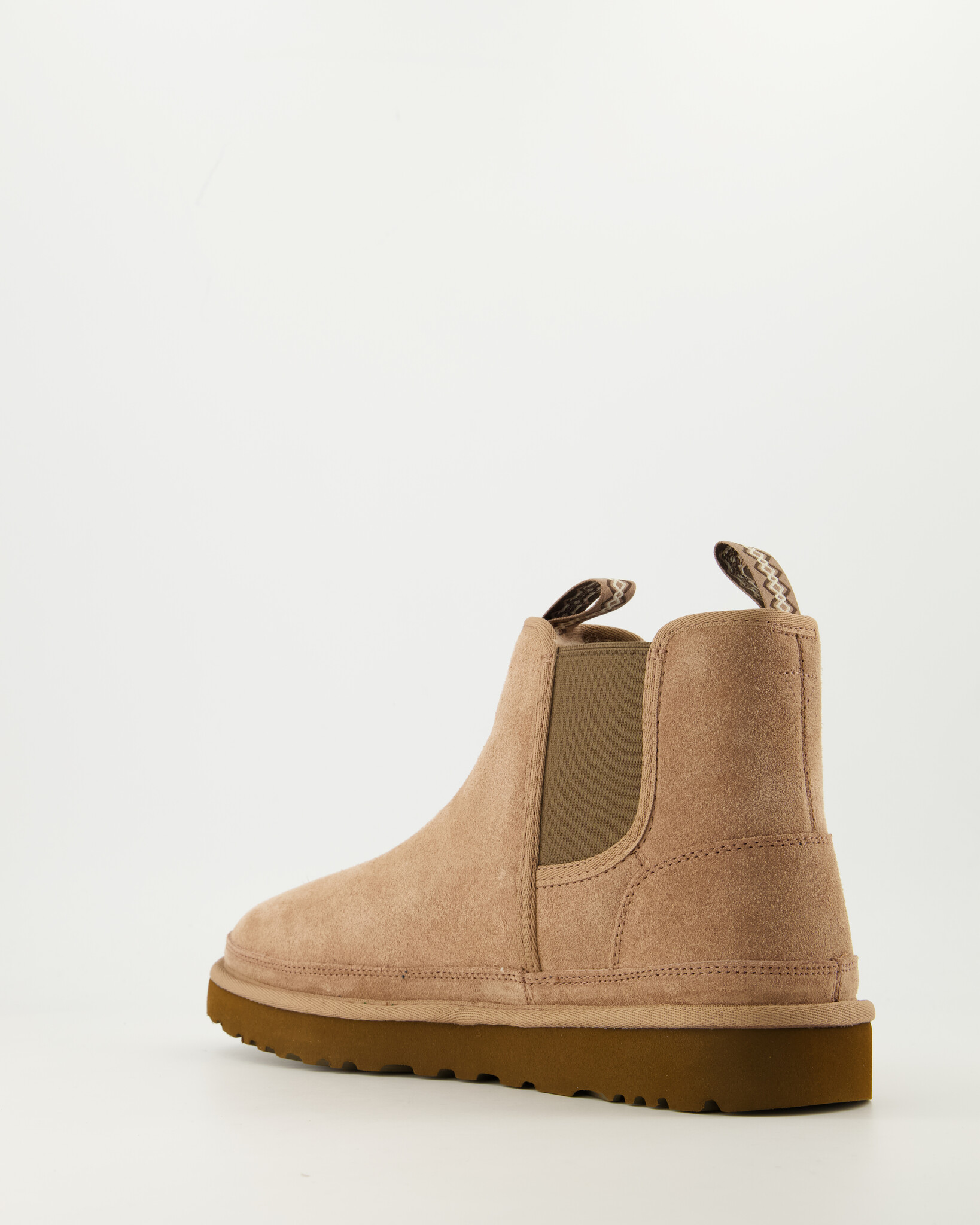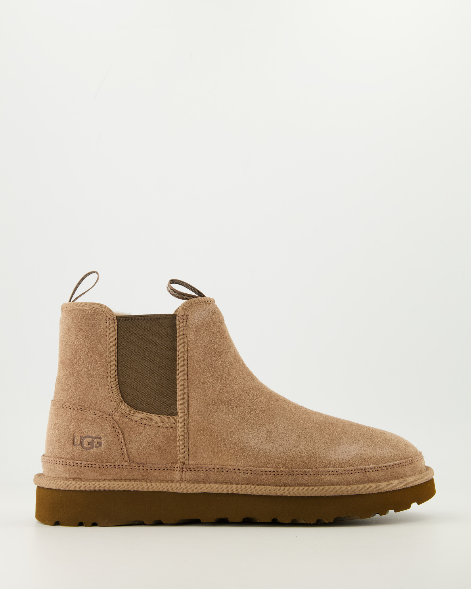 Bruine M Neumel Chelsea van het merk UGG. Dit iconische model is aan de buitenkant vervaardigd uit suède en voorbehandeld met vlek- en waterafstotende middelen. De binnenvoering is gemaakt van het welbekende schaapswol waardoor de voeten altijd verwarmd zijn. Het elastiek aan beide zijkanten helpt het aan- en uittrekken te versoepelen.