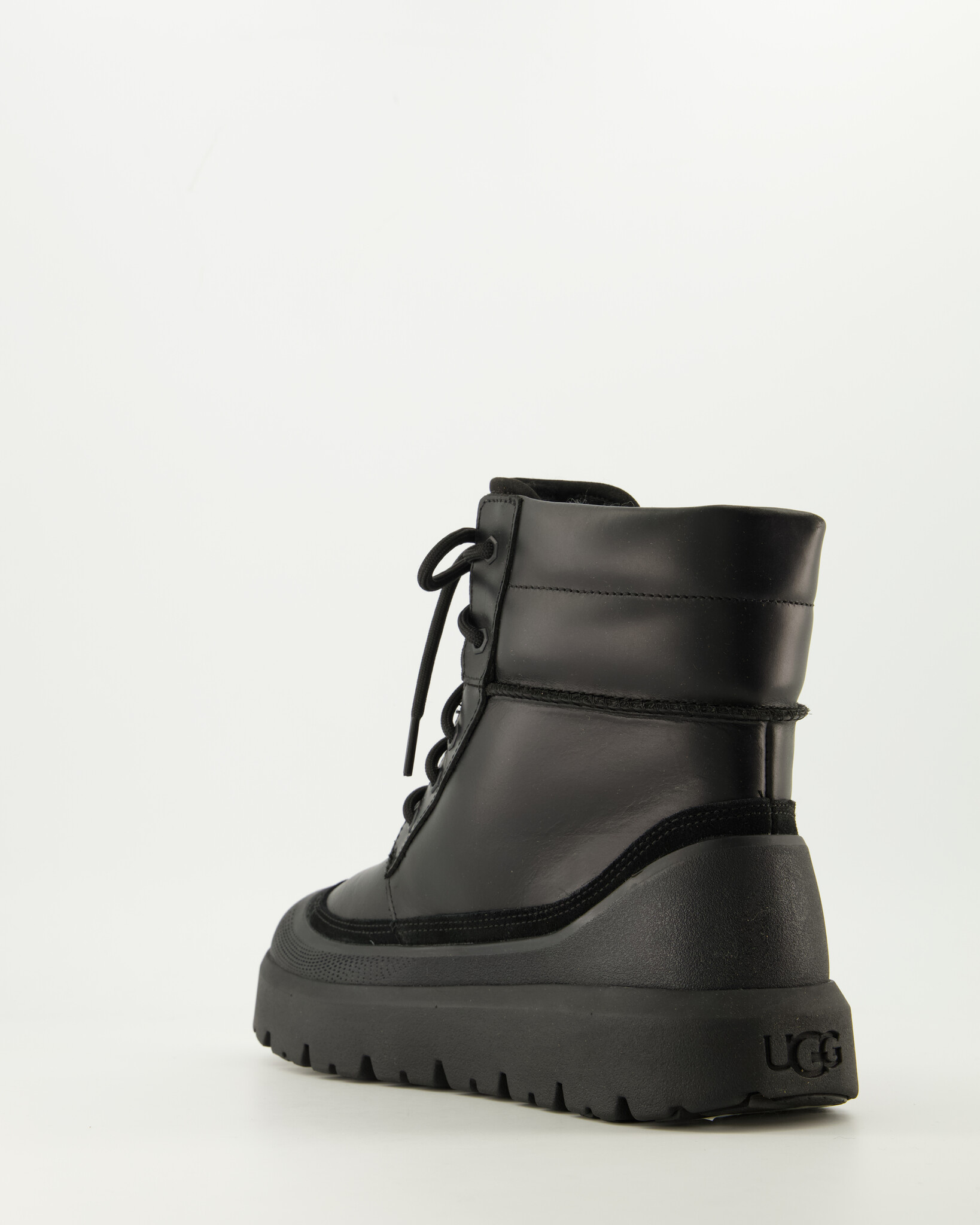 Zwart / Birch M Neumel High Weater van het merk UGG. Maak kennis met de Neumel High Weather Hybrid-laars. Geschikt tot -20 ºC met extra wattering in de kraag en een zachte voering van UGGplush: winterweer is niet opgewassen tegen deze laarzen. Het gevormde EVA-voetbed levert optimaal comfort en ondersteuning, terwijl de buitenkant van premium generfd leer waterafstotende bescherming biedt tegen lichte regen en sneeuw, verbeterd door het permanente externe spatdeel. Voor extra grip op zelfs de ijzigste dagen hebben we Spider Rubber®-noppen toegevoegd aan de zachte EVA-buitenzool van suikerriet.