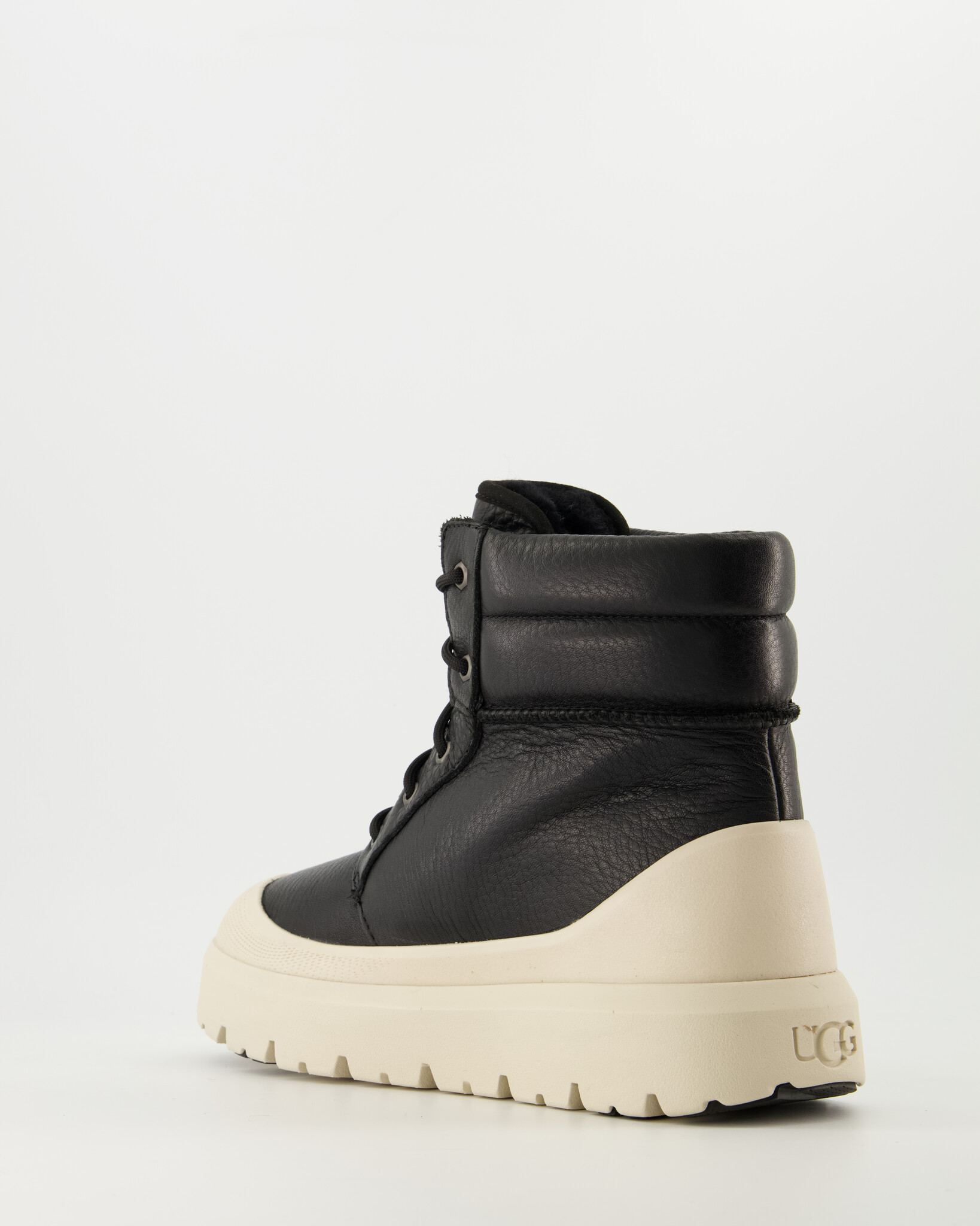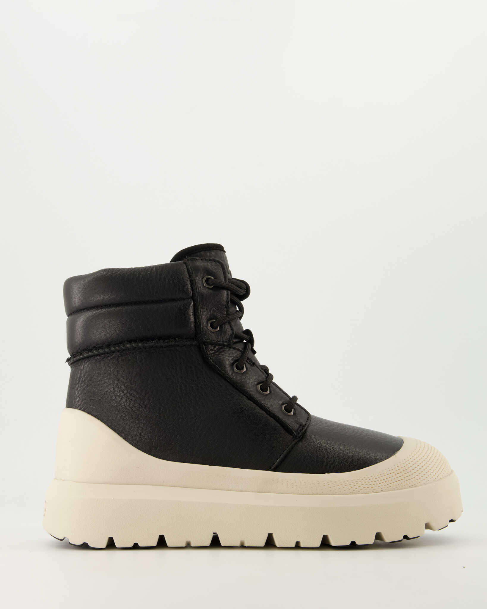 Zwart / Birch M Neumel High Weater Hybrid van het merk UGG. Maak kennis met de Neumel High Weather Hybrid-laars. Geschikt tot -20 ºC met extra wattering in de kraag en een zachte voering van UGGplush: winterweer is niet opgewassen tegen deze laarzen. Het gevormde EVA-voetbed levert optimaal comfort en ondersteuning, terwijl de buitenkant van premium generfd leer waterafstotende bescherming biedt tegen lichte regen en sneeuw, verbeterd door het permanente externe spatdeel. Voor extra grip op zelfs de ijzigste dagen hebben we Spider Rubber®-noppen toegevoegd aan de zachte EVA-buitenzool van suikerriet.