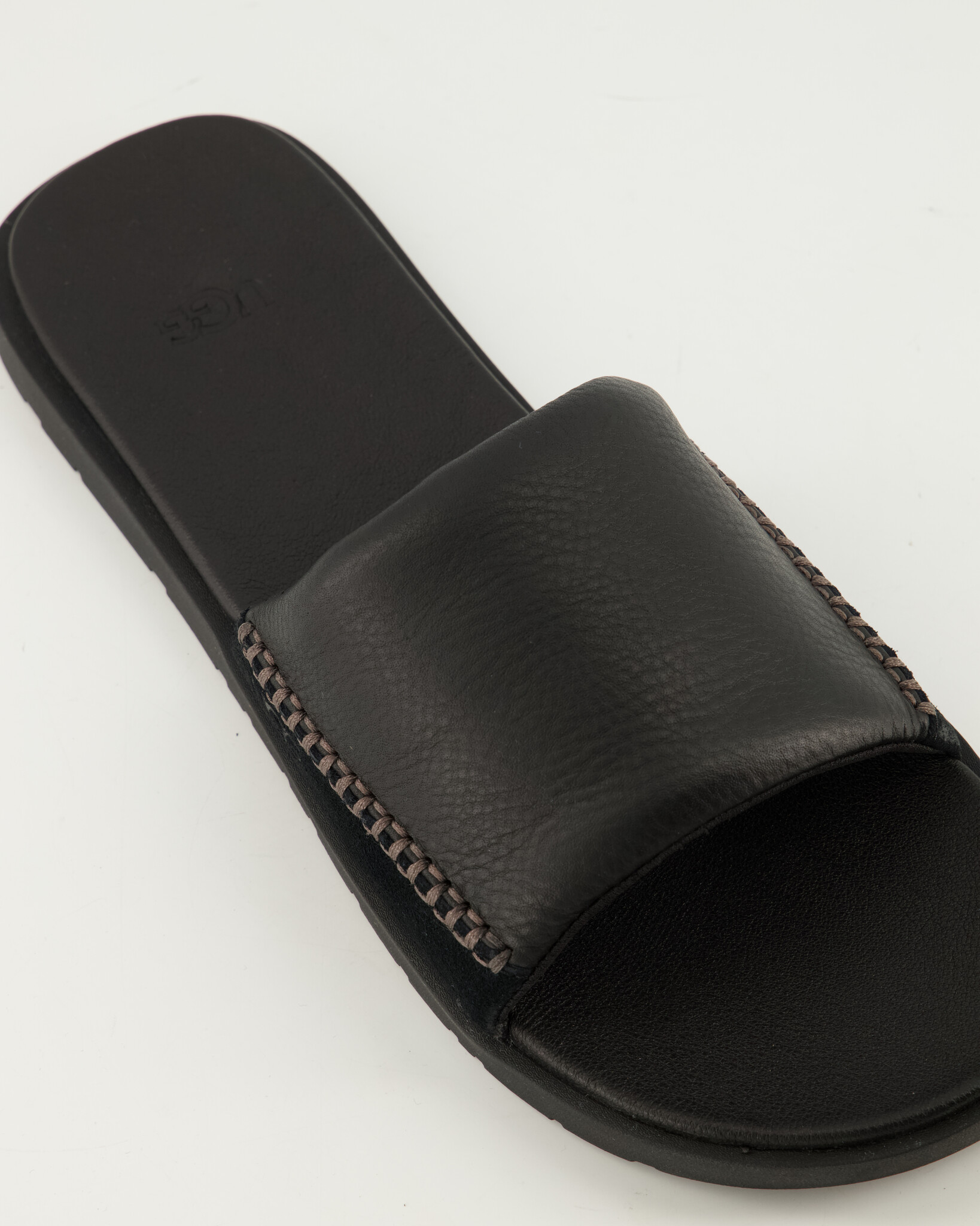 Deze luxe herenslipper van UGG is perfect voor warme dagen. Gemaakt van premium leer met een zacht voetbed van suikerriet-EVA voor optimaal comfort. De stevige rubberen zool zorgt voor grip, terwijl het minimalistische design zorgt voor een stijlvolle zomerse look.