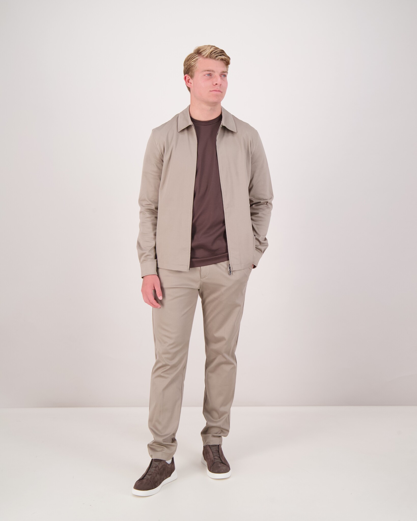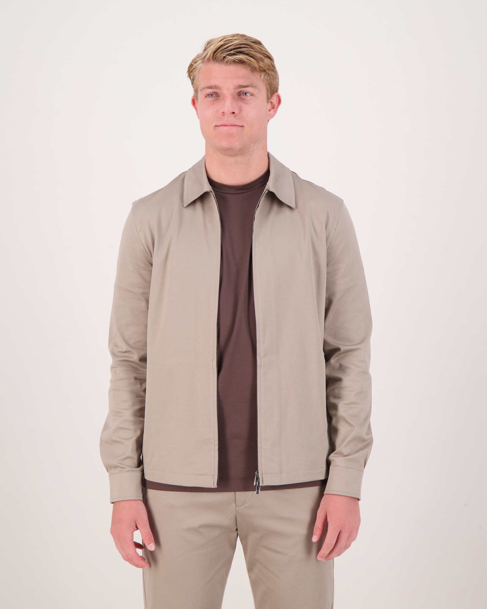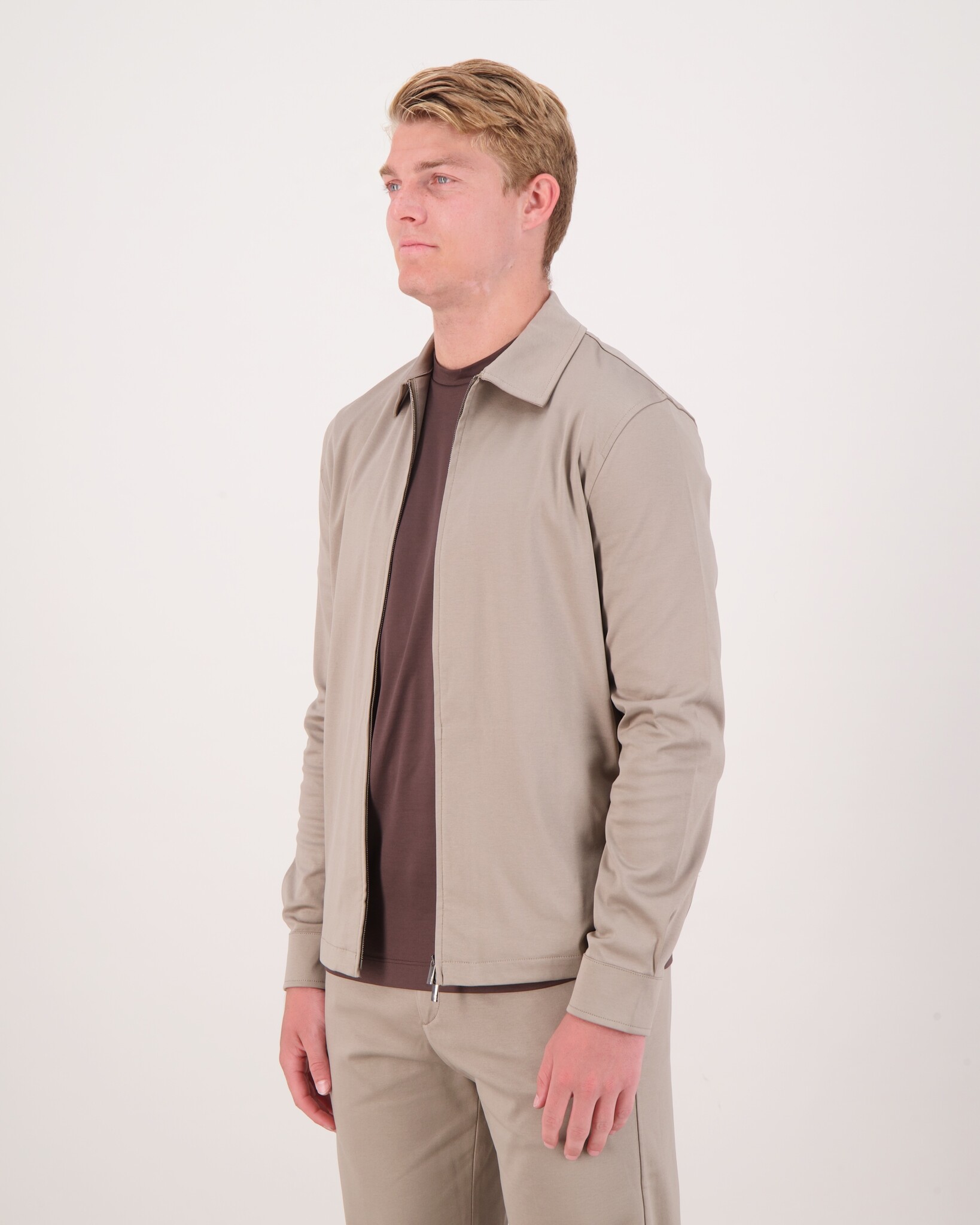Een verfijnde regular-fit overshirt met klassieke boordkraag en metalen rits—een moderne twist op het traditionele silhouet. Gemaakt van stevig interlock Supima-katoen (230 g/m²) voor een luxueuze, duurzame feel.