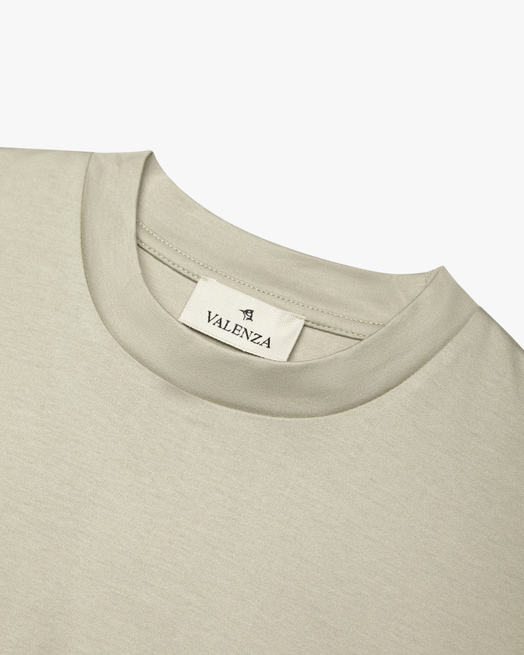 Stone Valenza Interlock Supima Oversized T-Shirt van het merk Valenza. Het T-shirt heeft korte mouwen en een ronde hals.