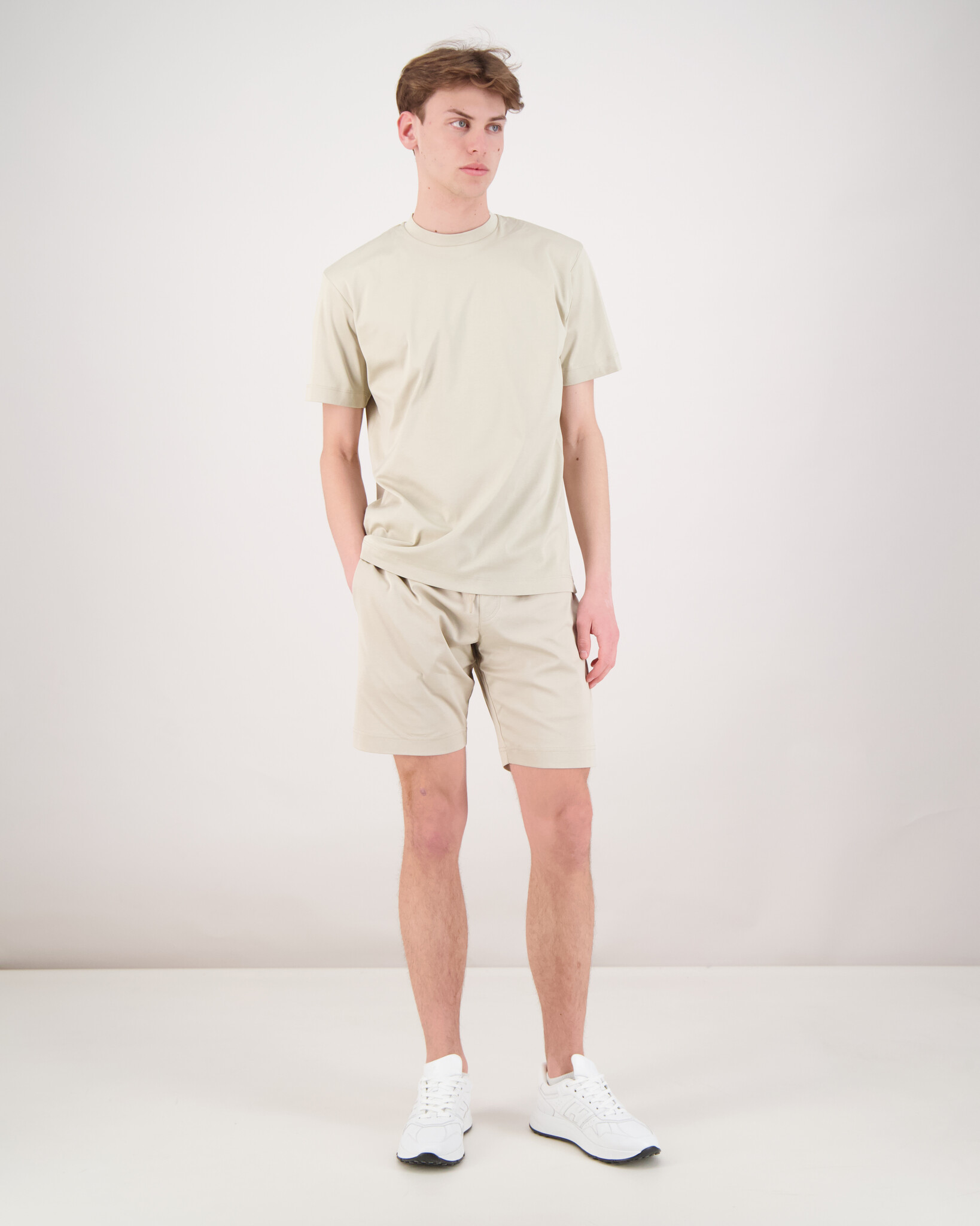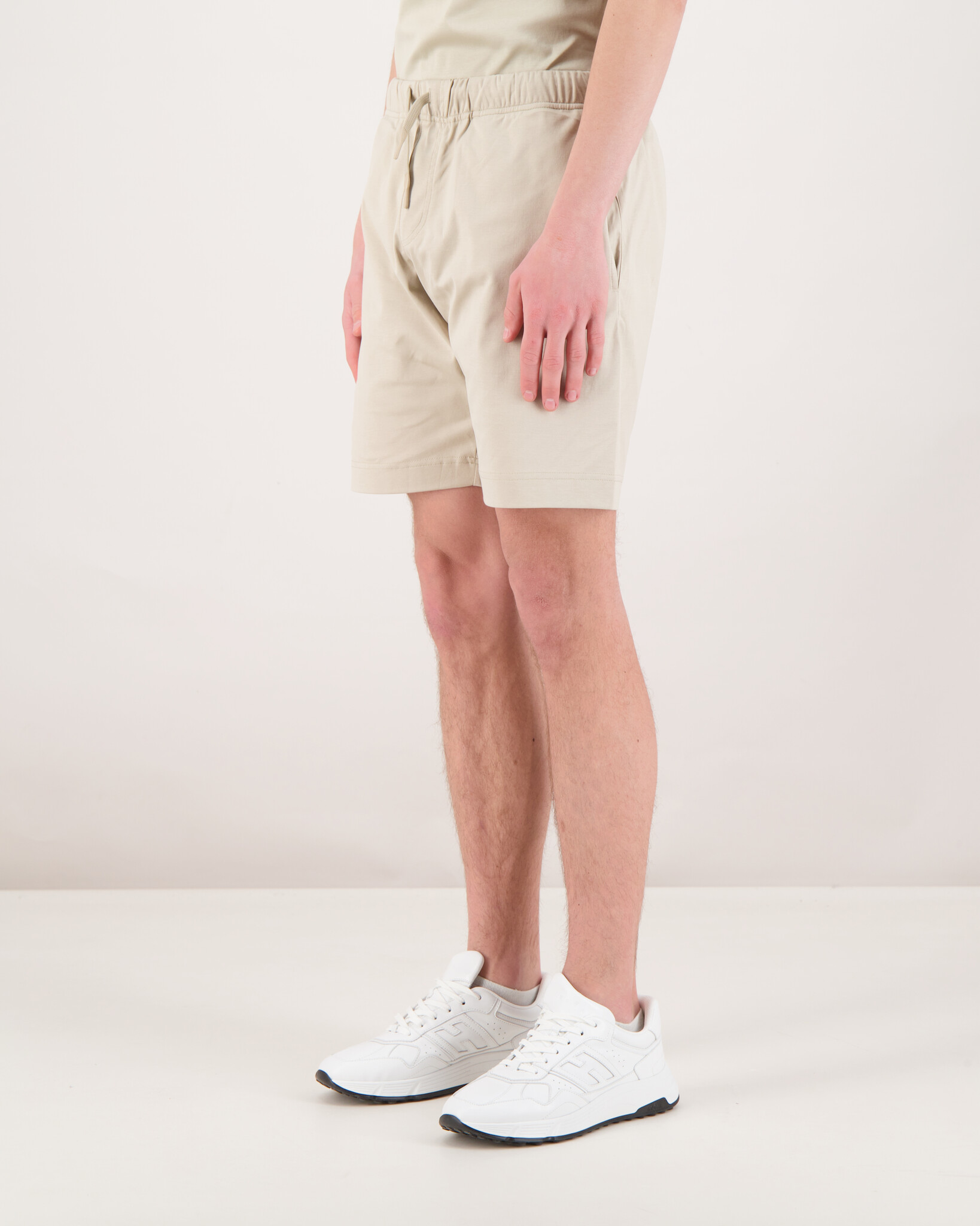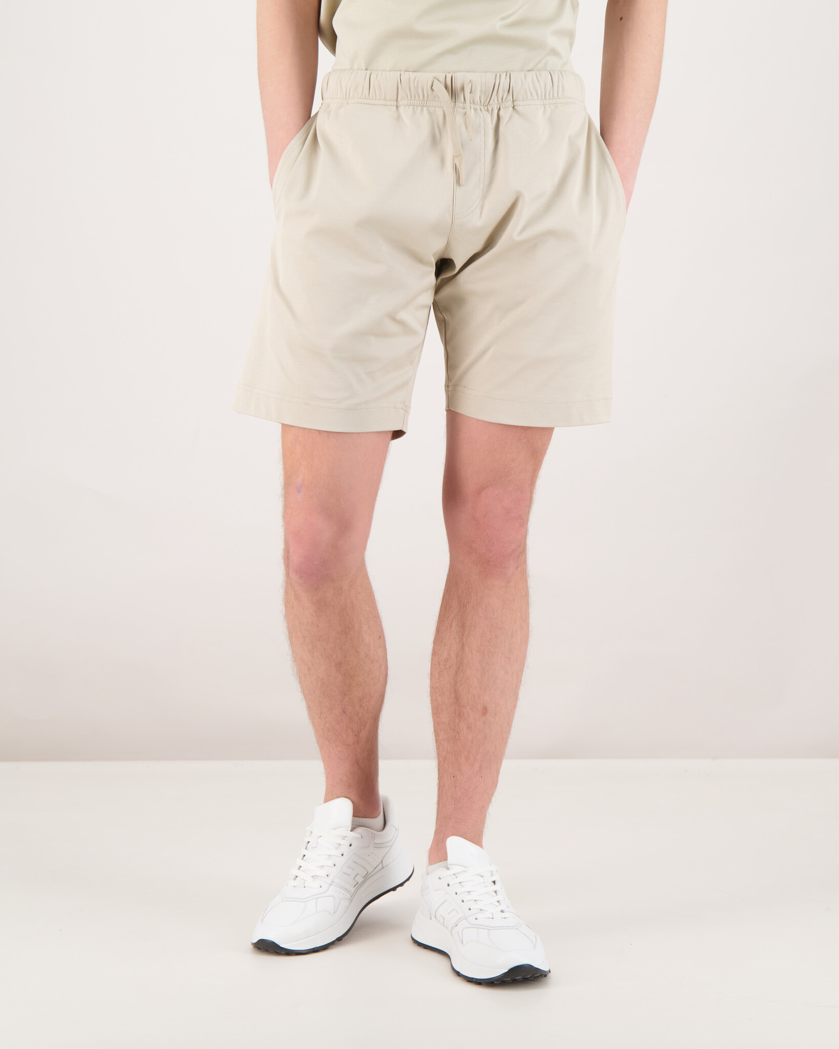 Beige Interlock Supima Sport Shorts van het merk Valenza. De short heeft twee steekzakken en een aantrekkoort.