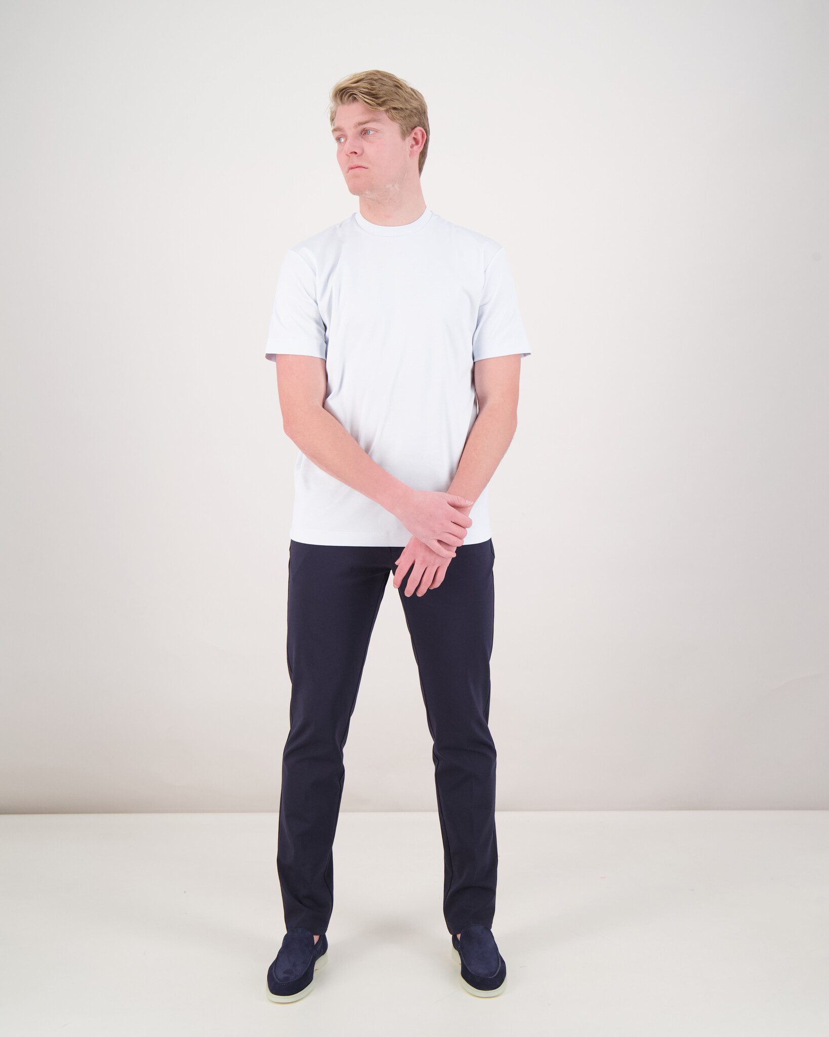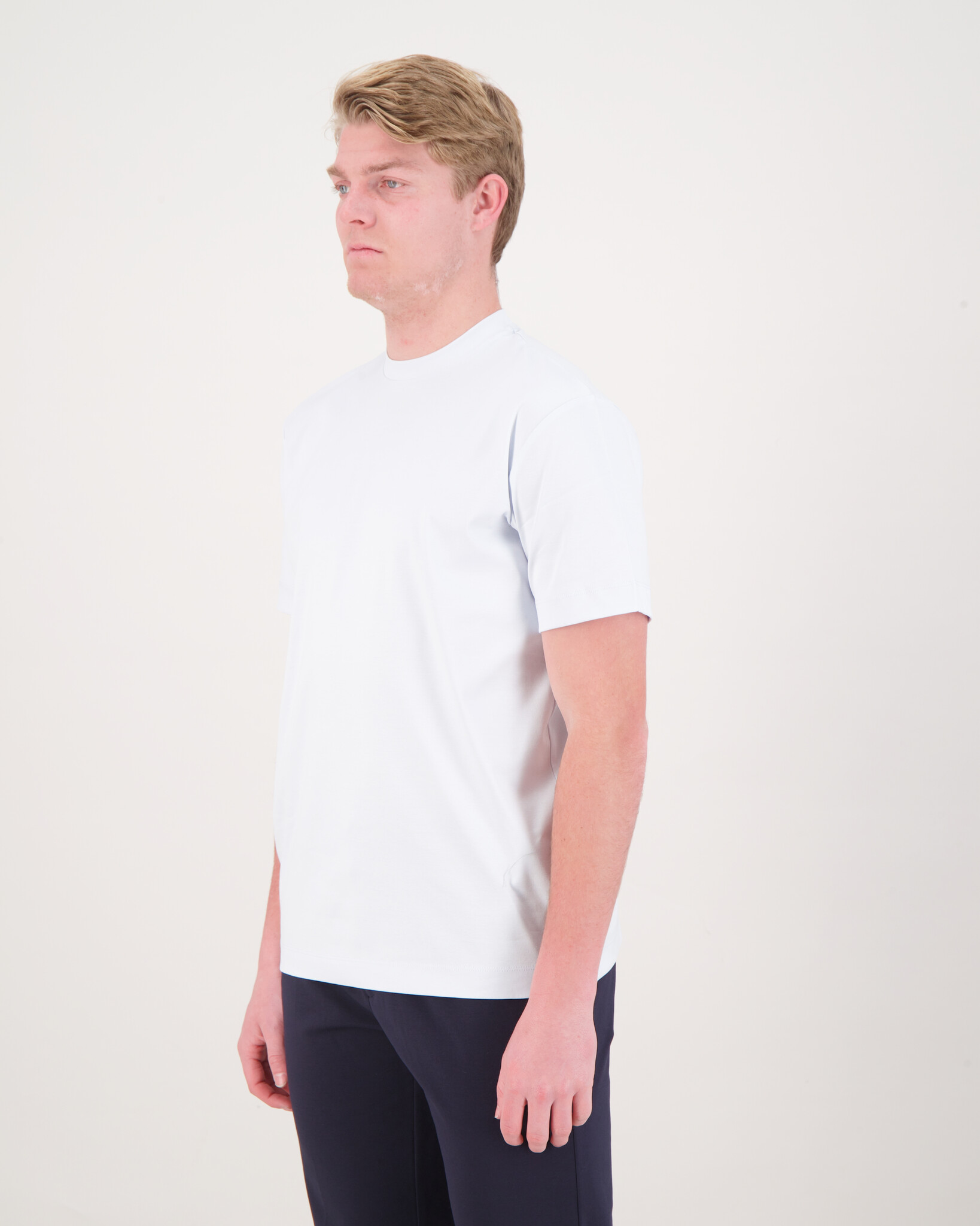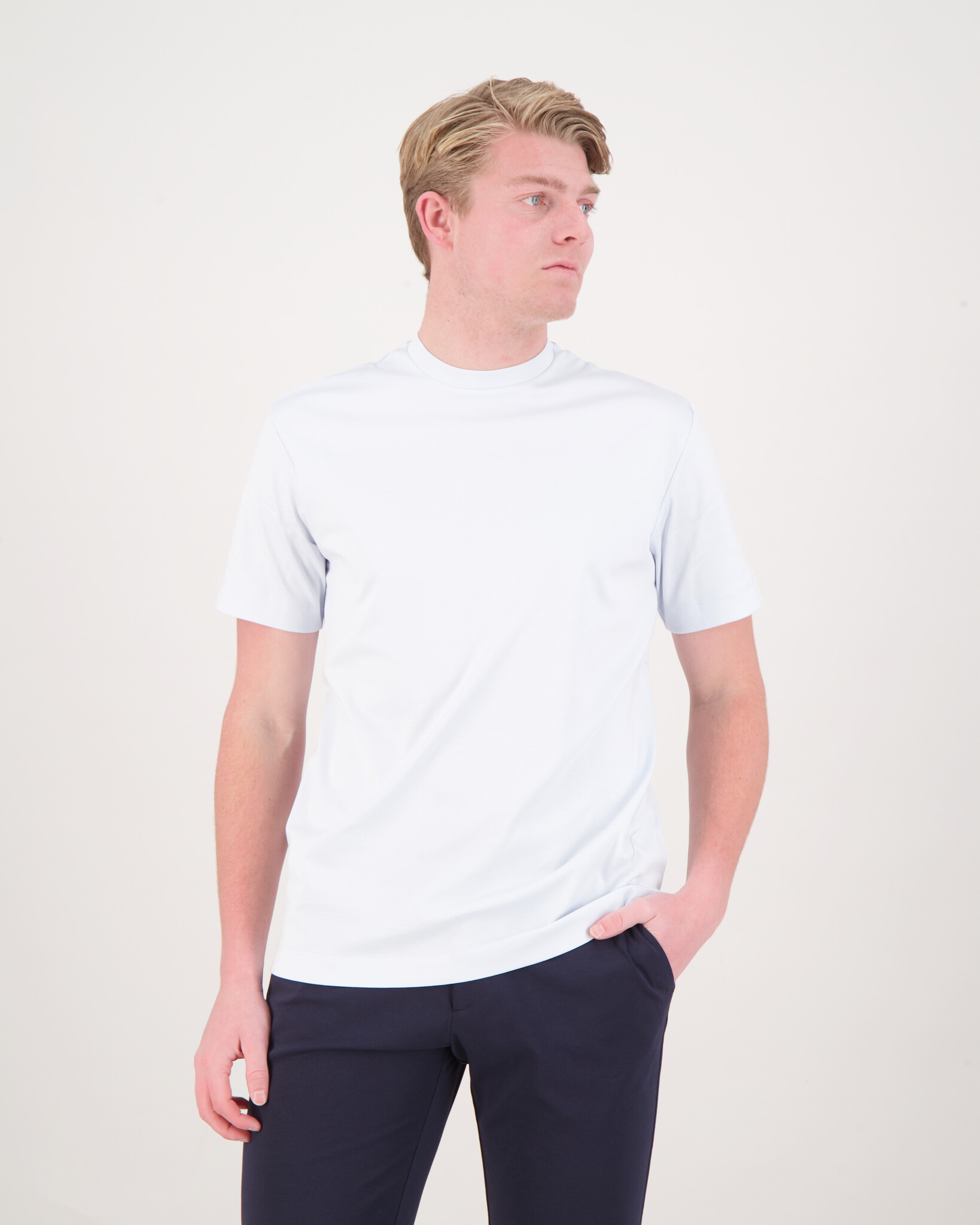 Licht blauwe Valenza Interlock Supima T-Shirt van het merk Valenza. Het T-shirt heeft korte mouwen, een ronde hals.