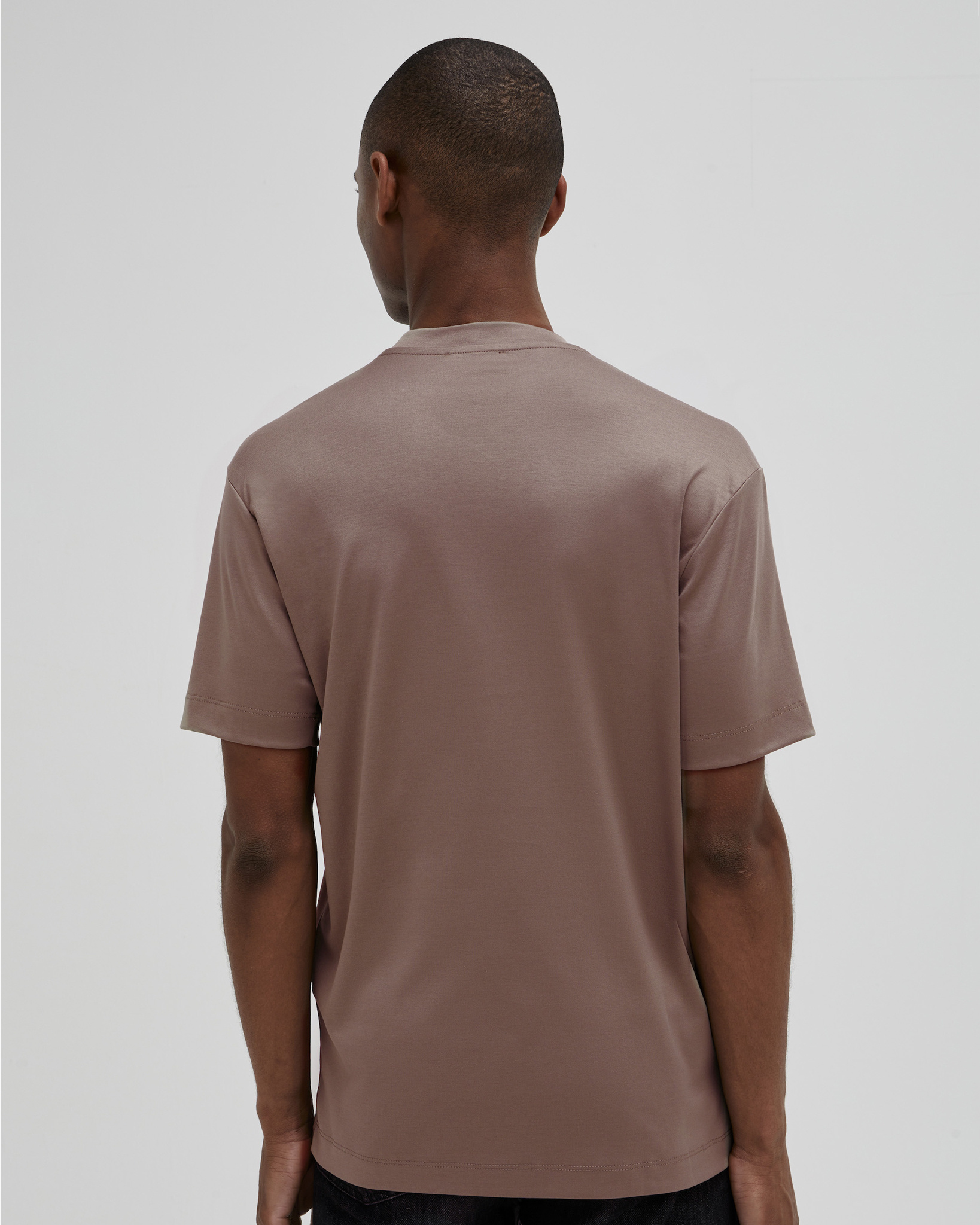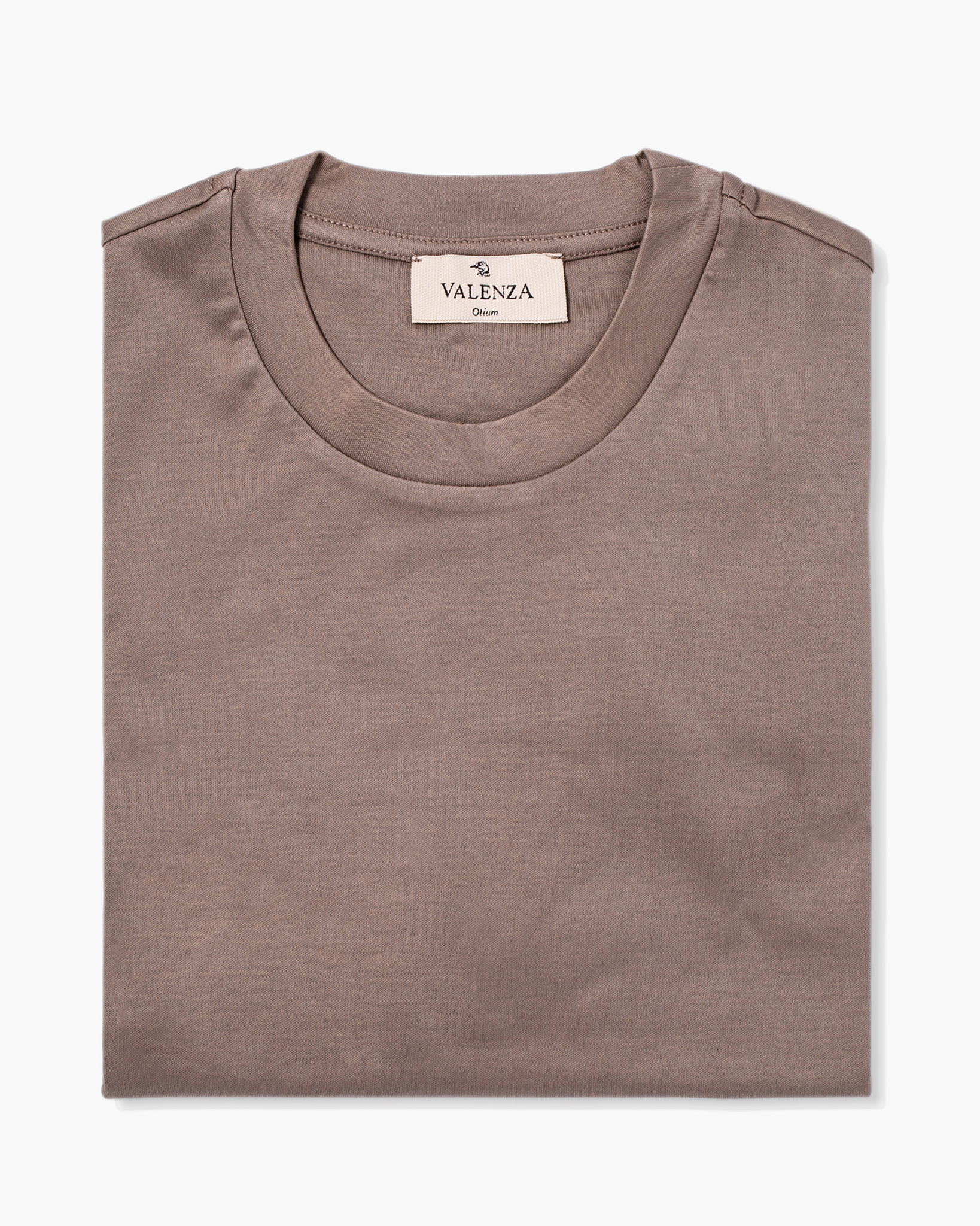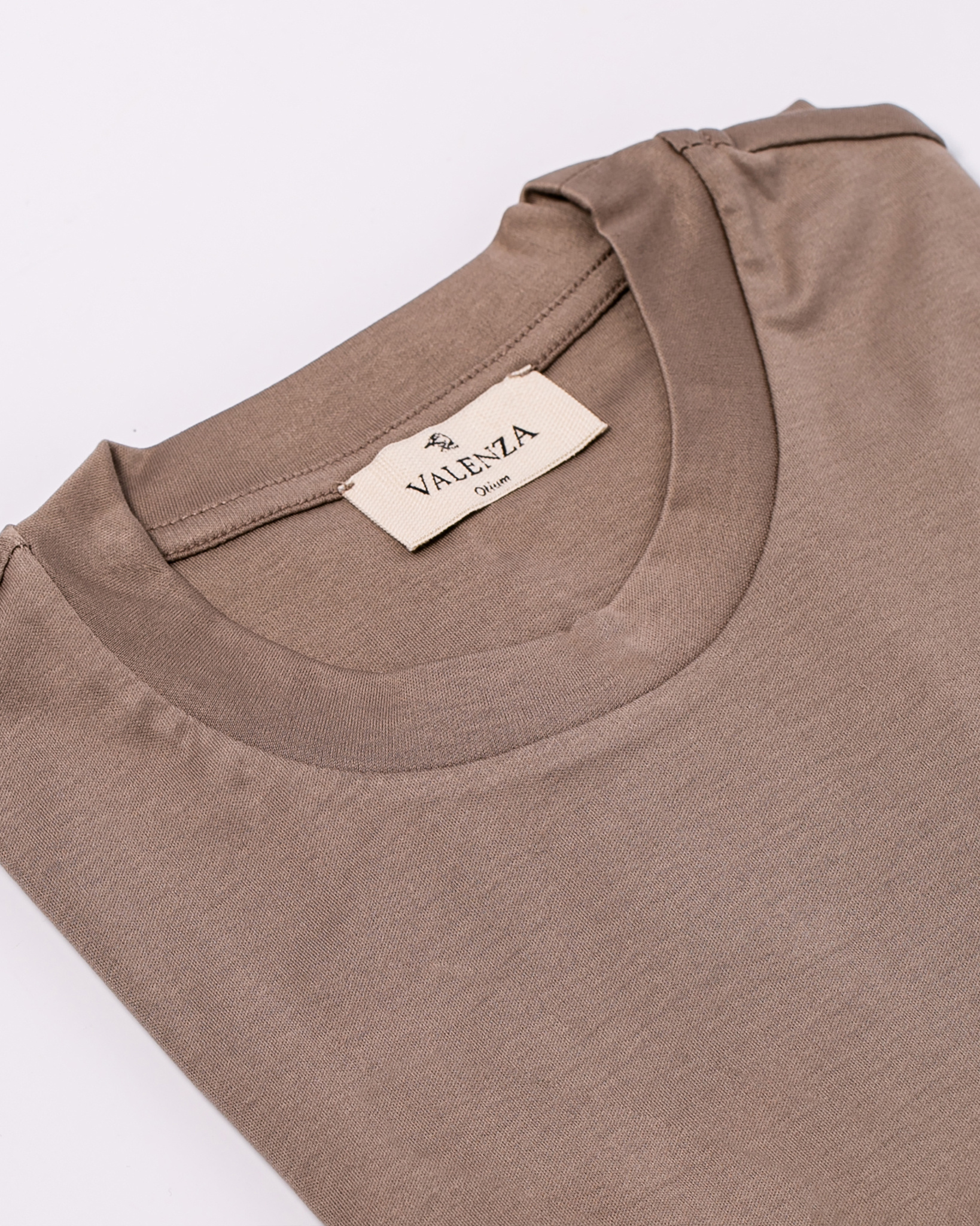 Beige Valenza Interlock Supima T-Shirt van het merk Valenza. Het T-shirt heeft korte mouwen, een ronde hals.