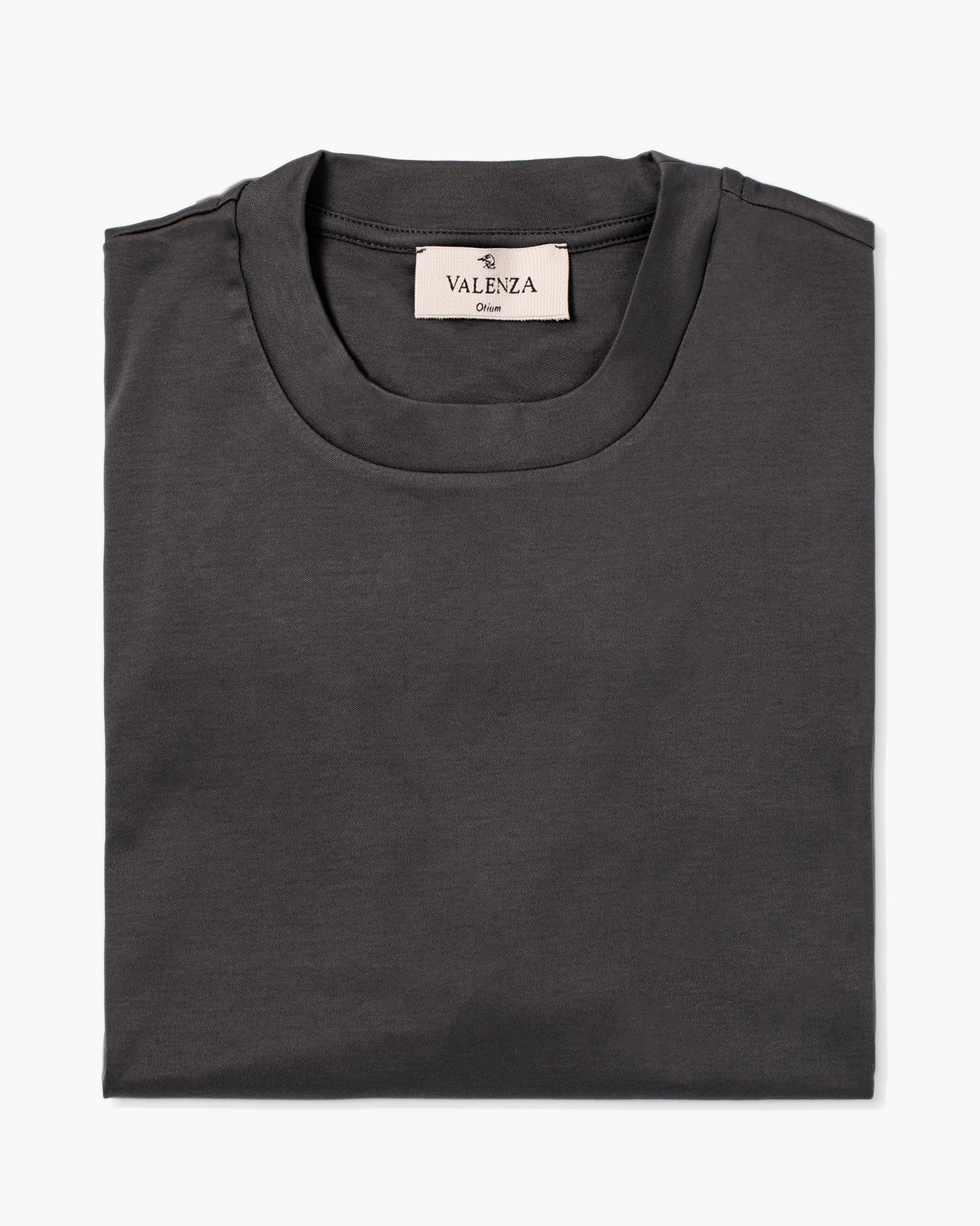Donker Grijs Valenza Interlock Supima T-Shirt van het merk Valenza. Het T-shirt heeft korte mouwen, een ronde hals.