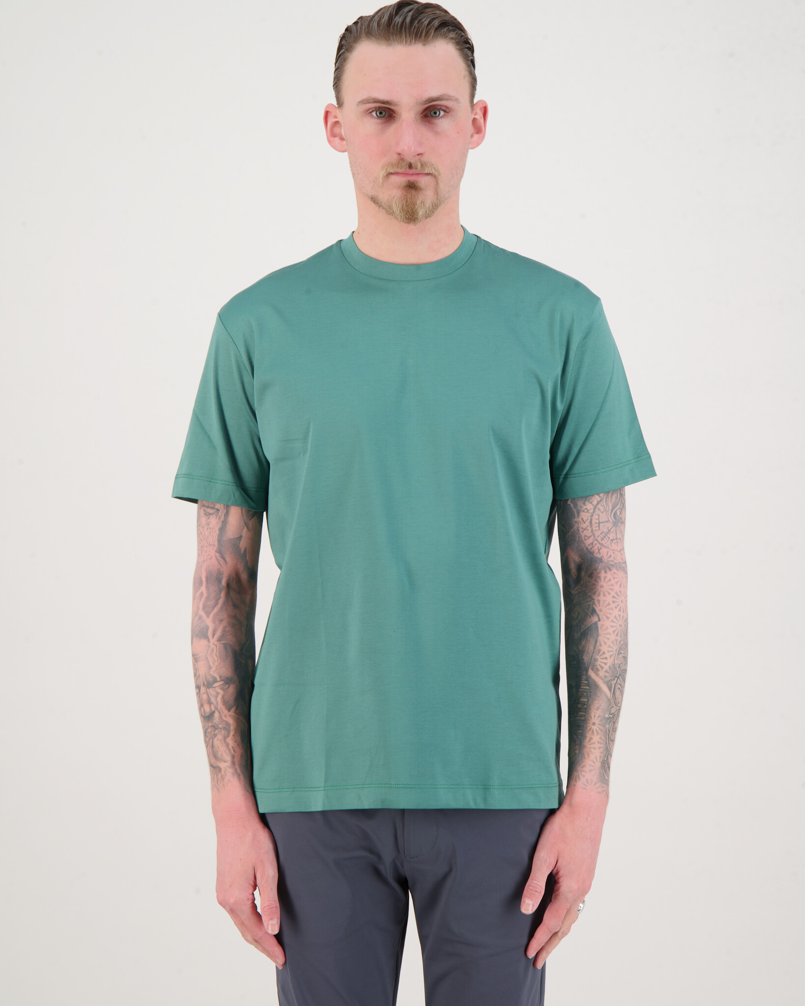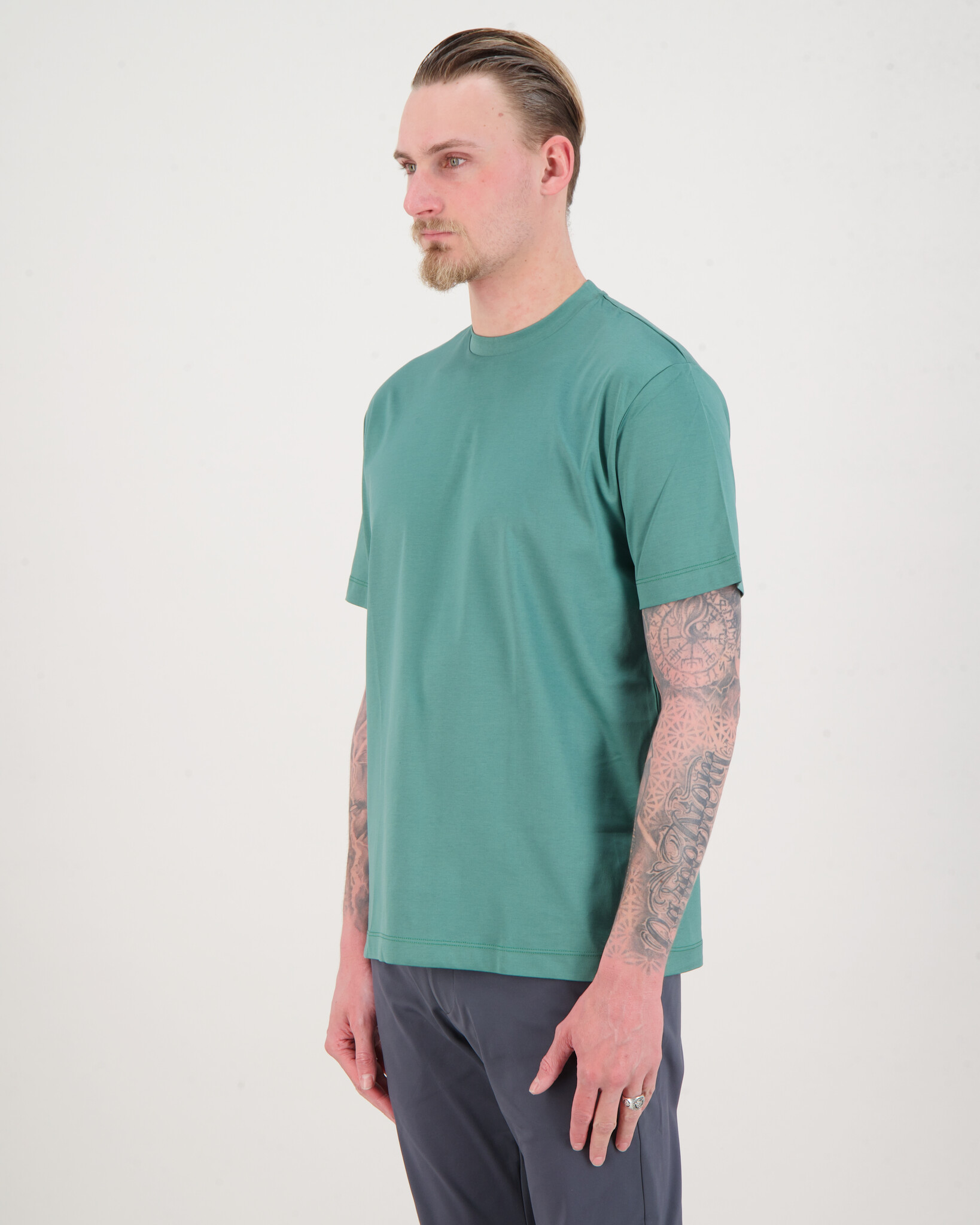 Groene Valenza Interlock Supima T-Shirt van het merk Valenza. Het T-shirt heeft korte mouwen, een ronde hals.