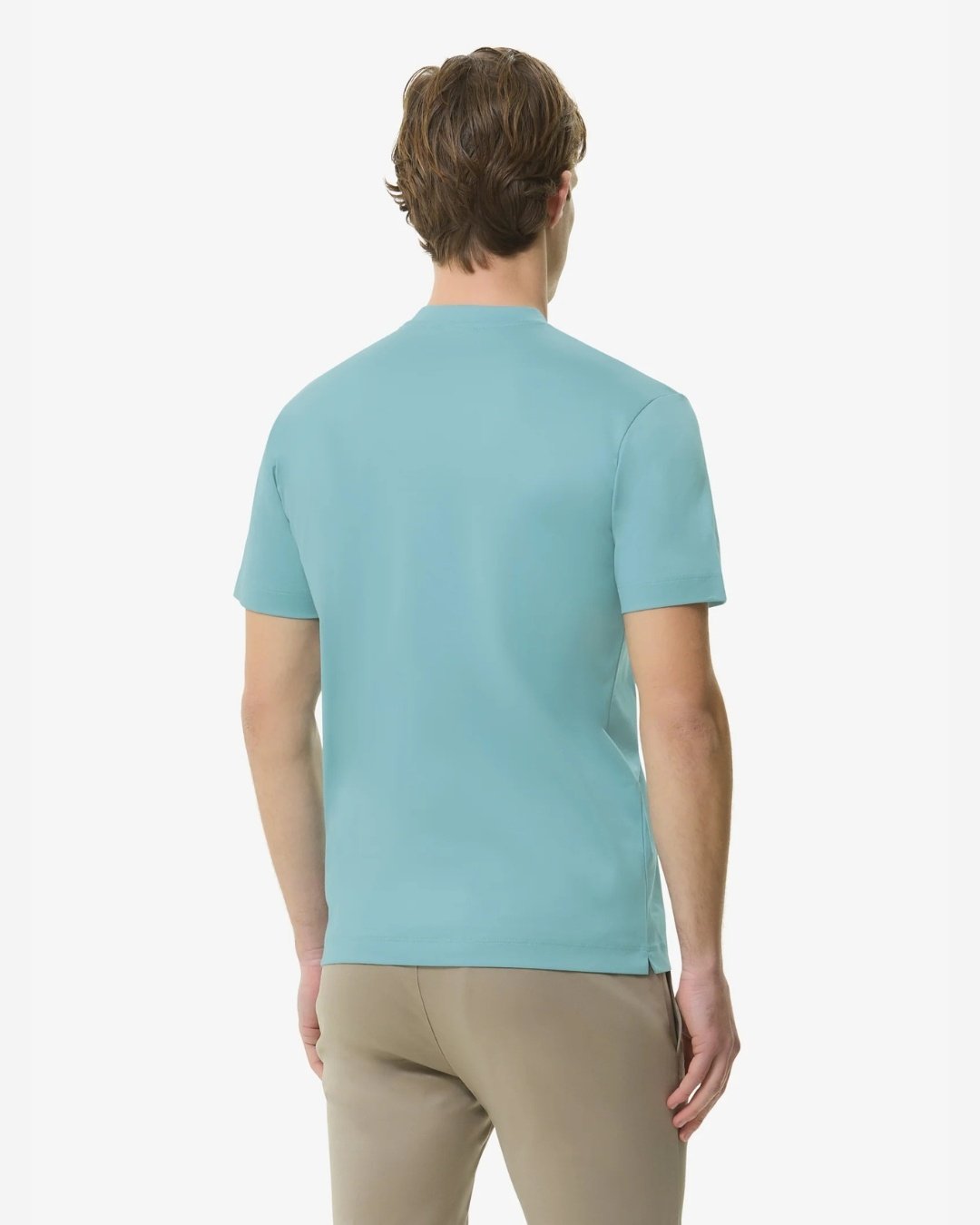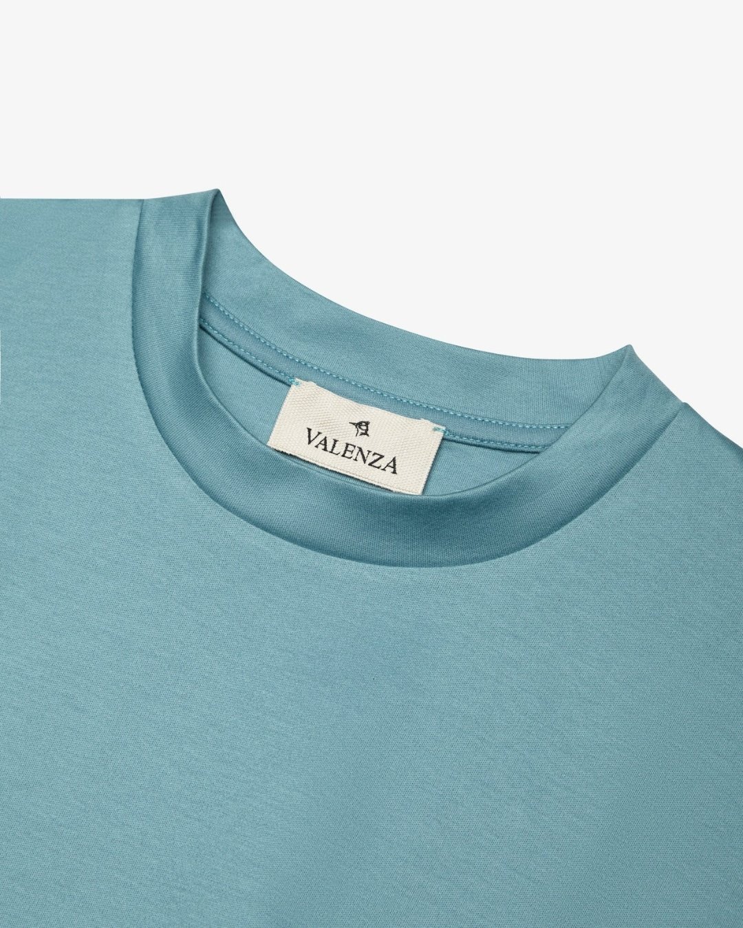 Teal Valenza Interlock Supima T-Shirt van het merk Valenza. Het T-shirt heeft korte mouwen, een ronde hals.