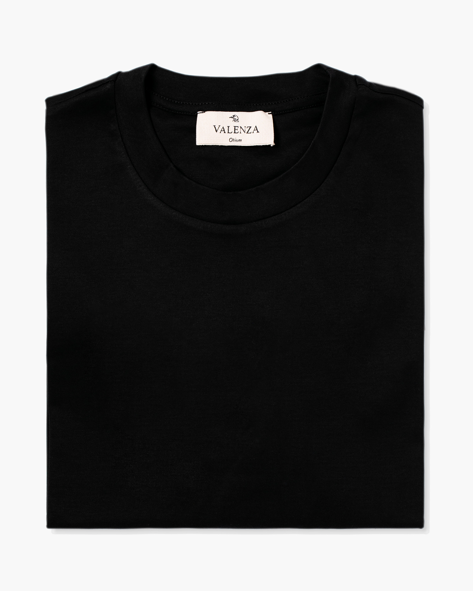 Zwarte Valenza Interlock Supima T-Shirt van het merk Valenza. Het T-shirt heeft korte mouwen, een ronde hals.