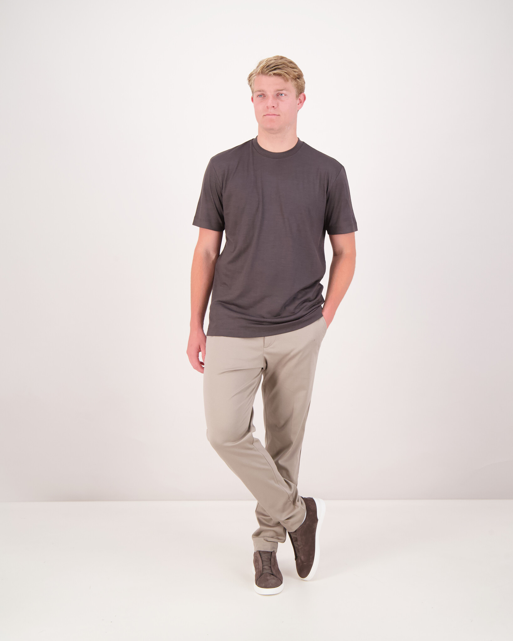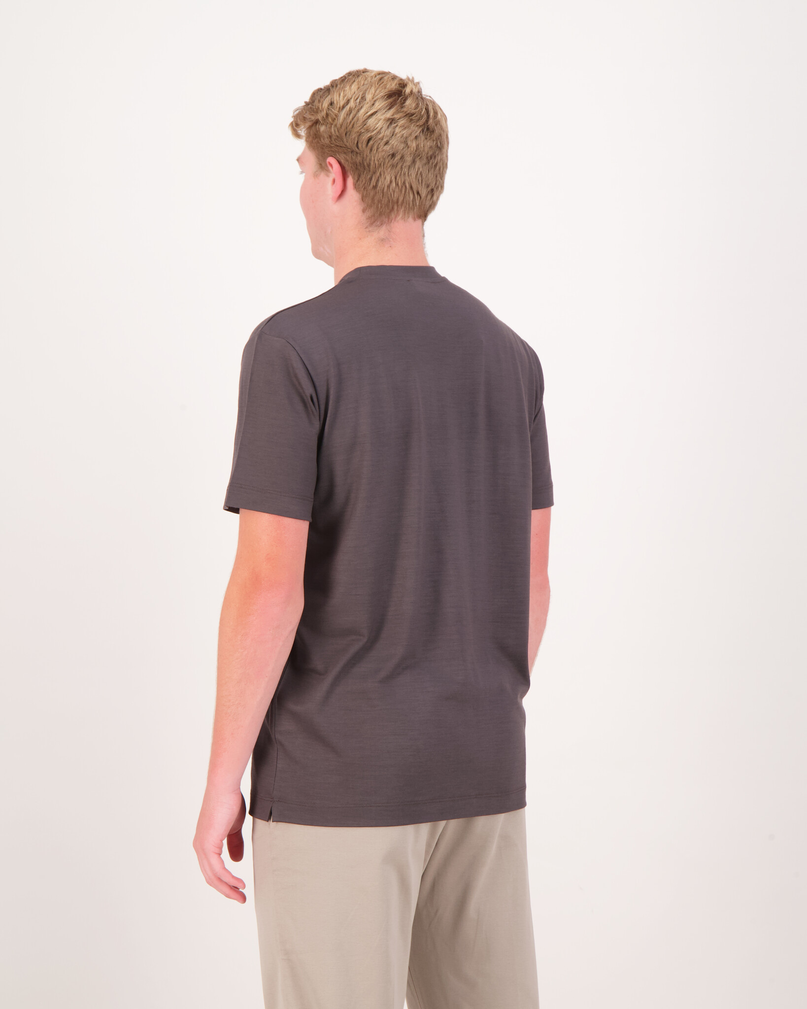 Luxe T-shirt van Valenza, 100% fijngebreide merinowol met ronde hals en een licht aangesloten pasvorm. Gemaakt in Italië van ademende, temperatuurregulerende wol. Comfortabel, stijlvol en geschikt voor elk seizoen.