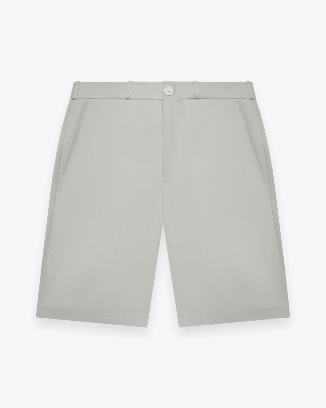 Pearl Grey Interlock Supima Sport Shorts van het merk Valenza. De short heeft twee steekzakken en een knoopsluiting.