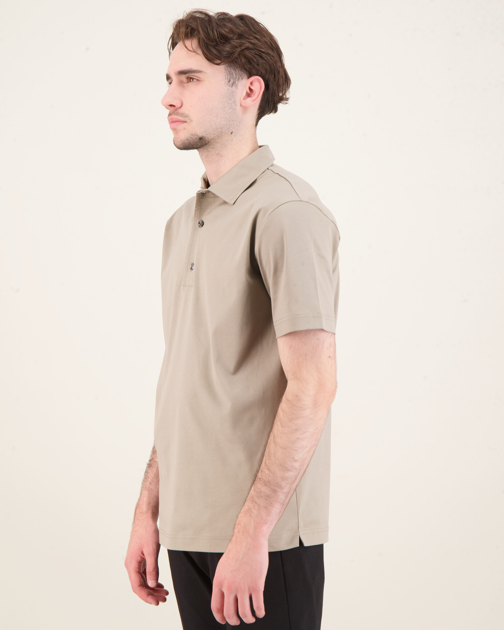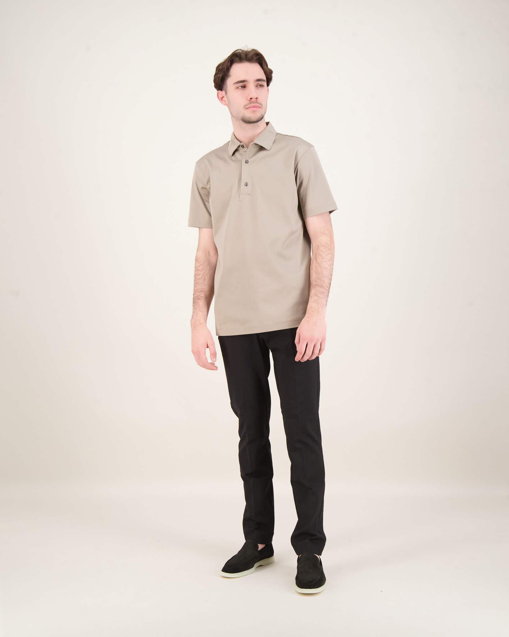 Grijze Supima Schiller Collar Polo van het merk Valenza. Het polo heeft een korte mouw en sluit aan de boven kant met 3 knopen.