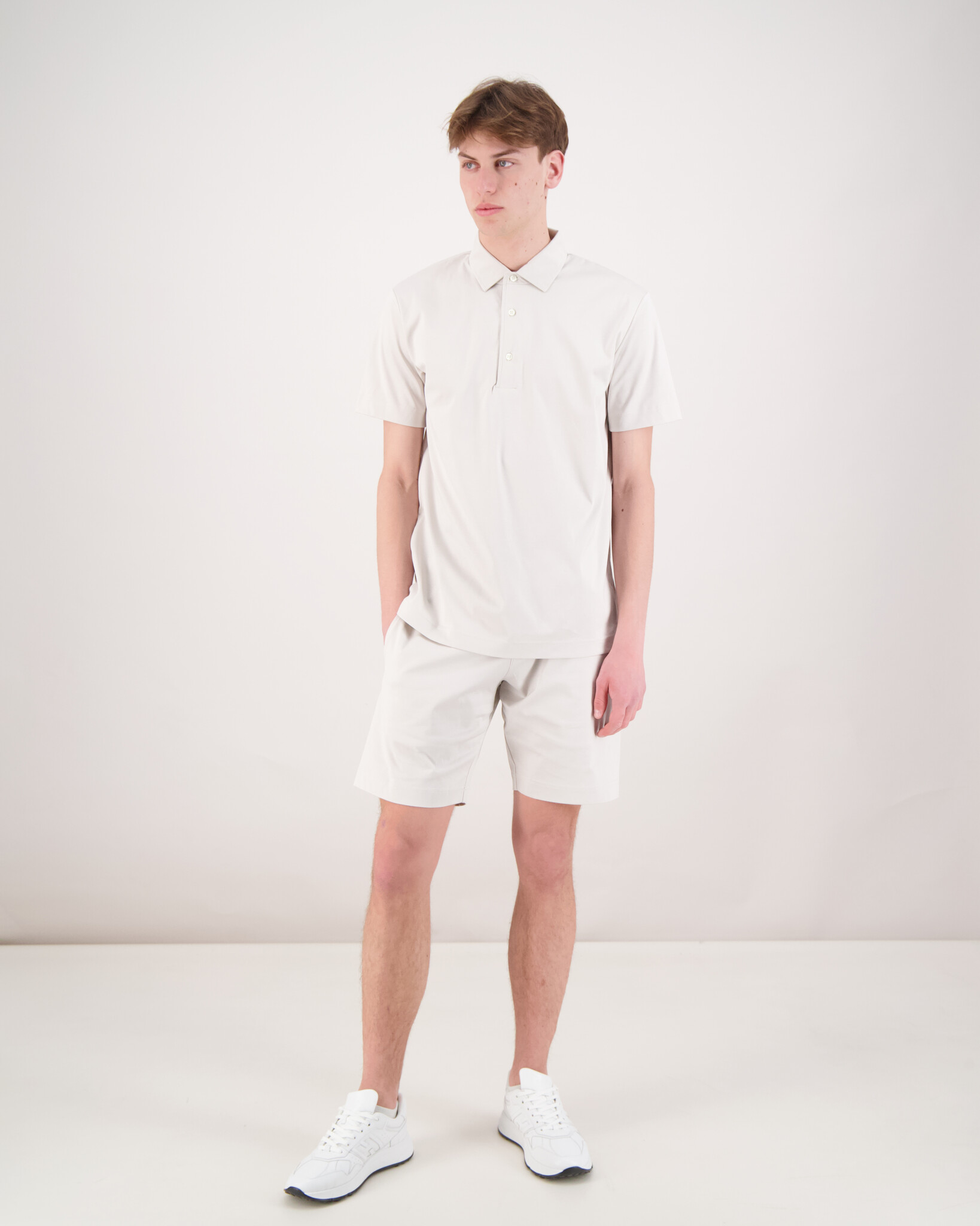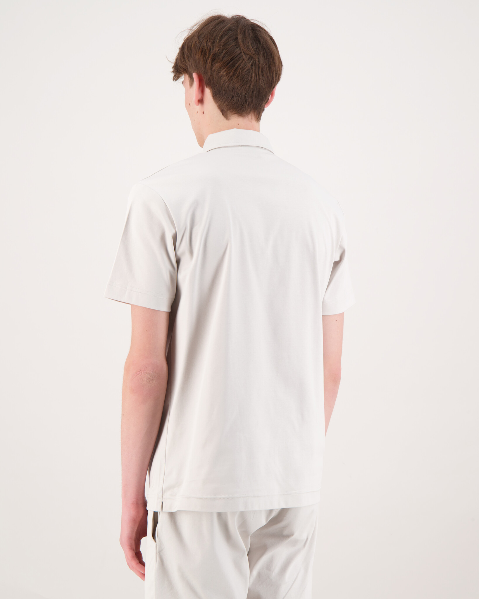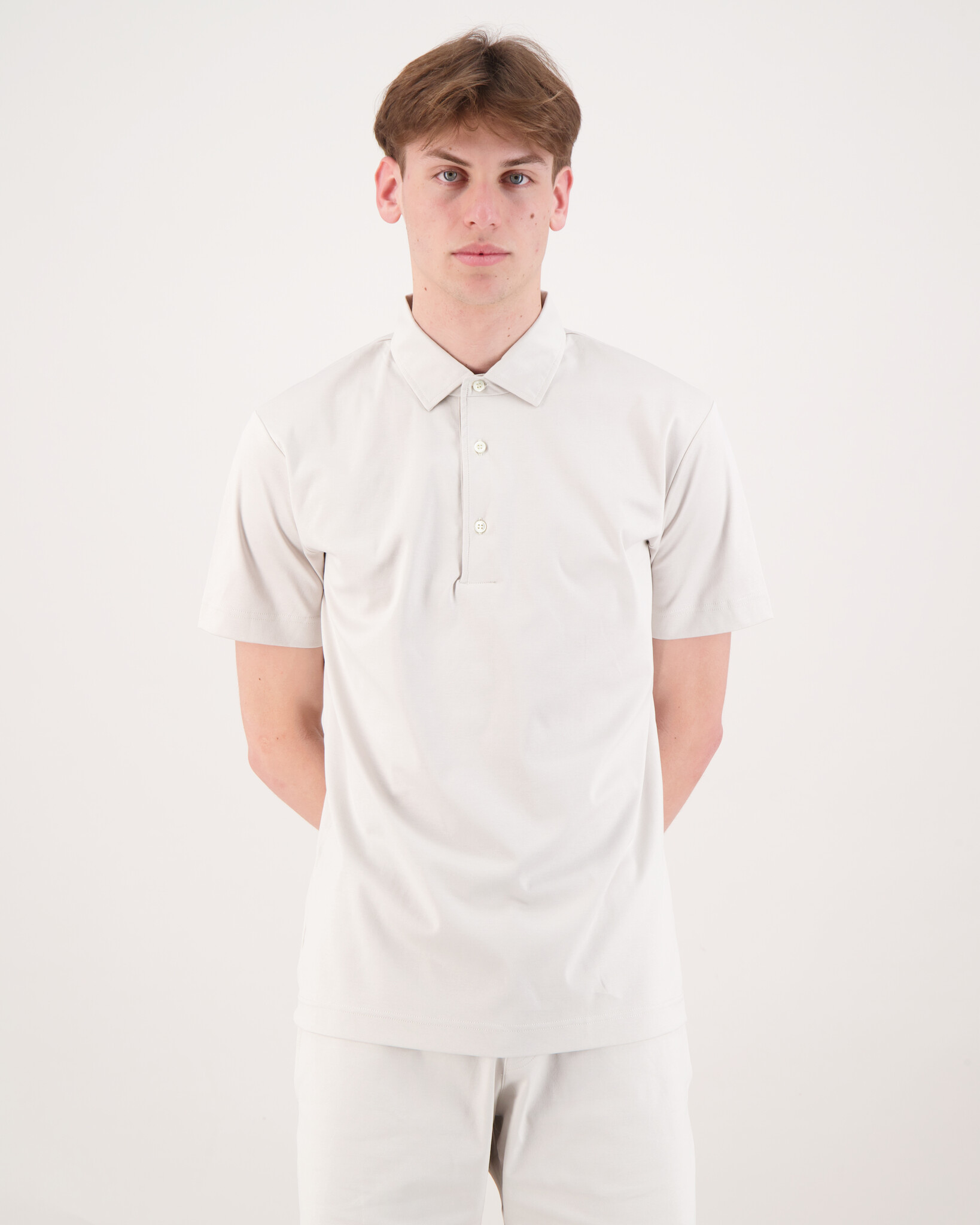 Licht Grijze Supima Schiller Collar Polo van het merk Valenza. Het polo heeft een korte mouw en sluit aan de boven kant met 3 knopen.