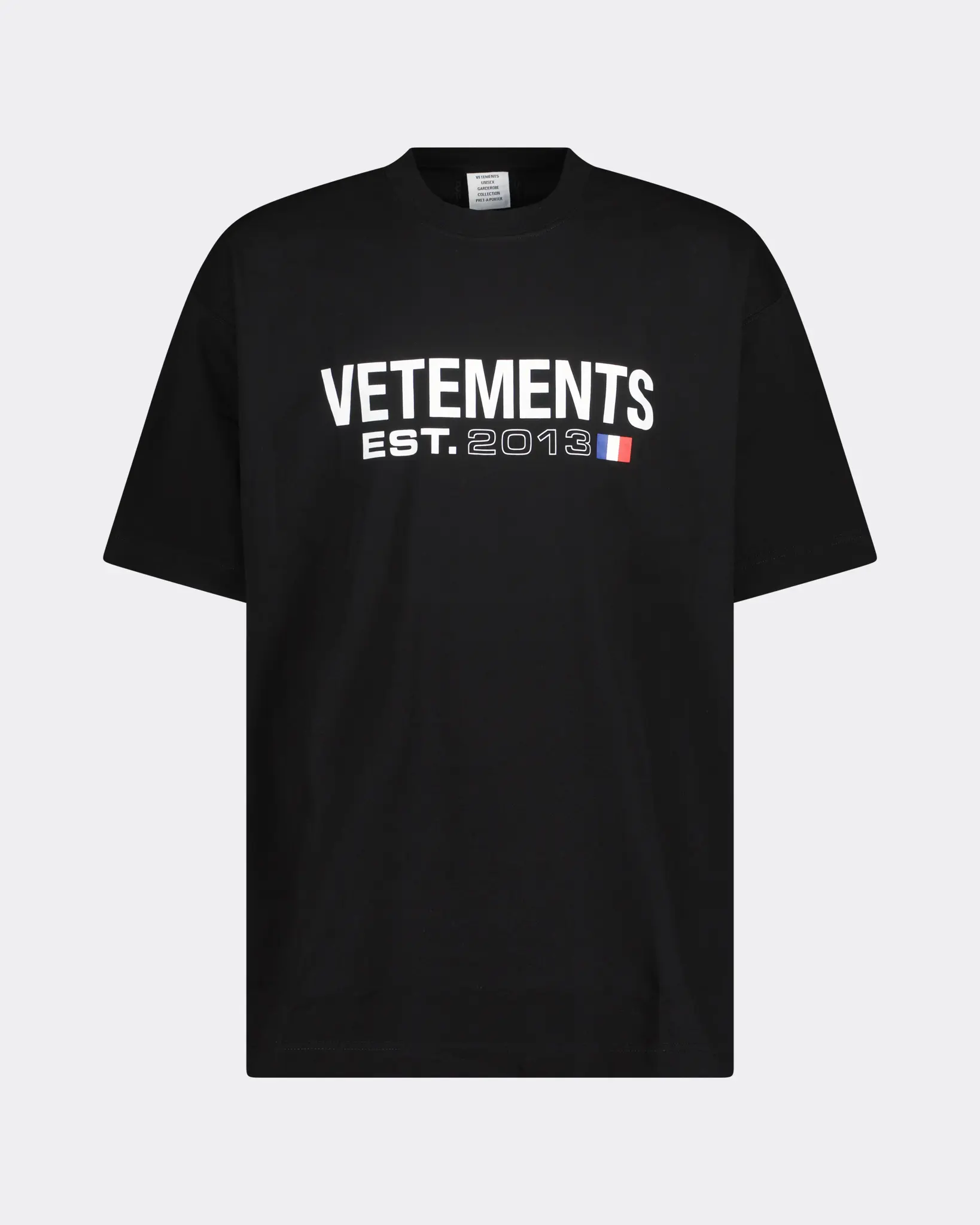 Zwarte ' Flag Logo T-Shirt ' van het merk Vetements. Het T-Shirt heeft een ronde hals, korte mouwen en een print op de borst.