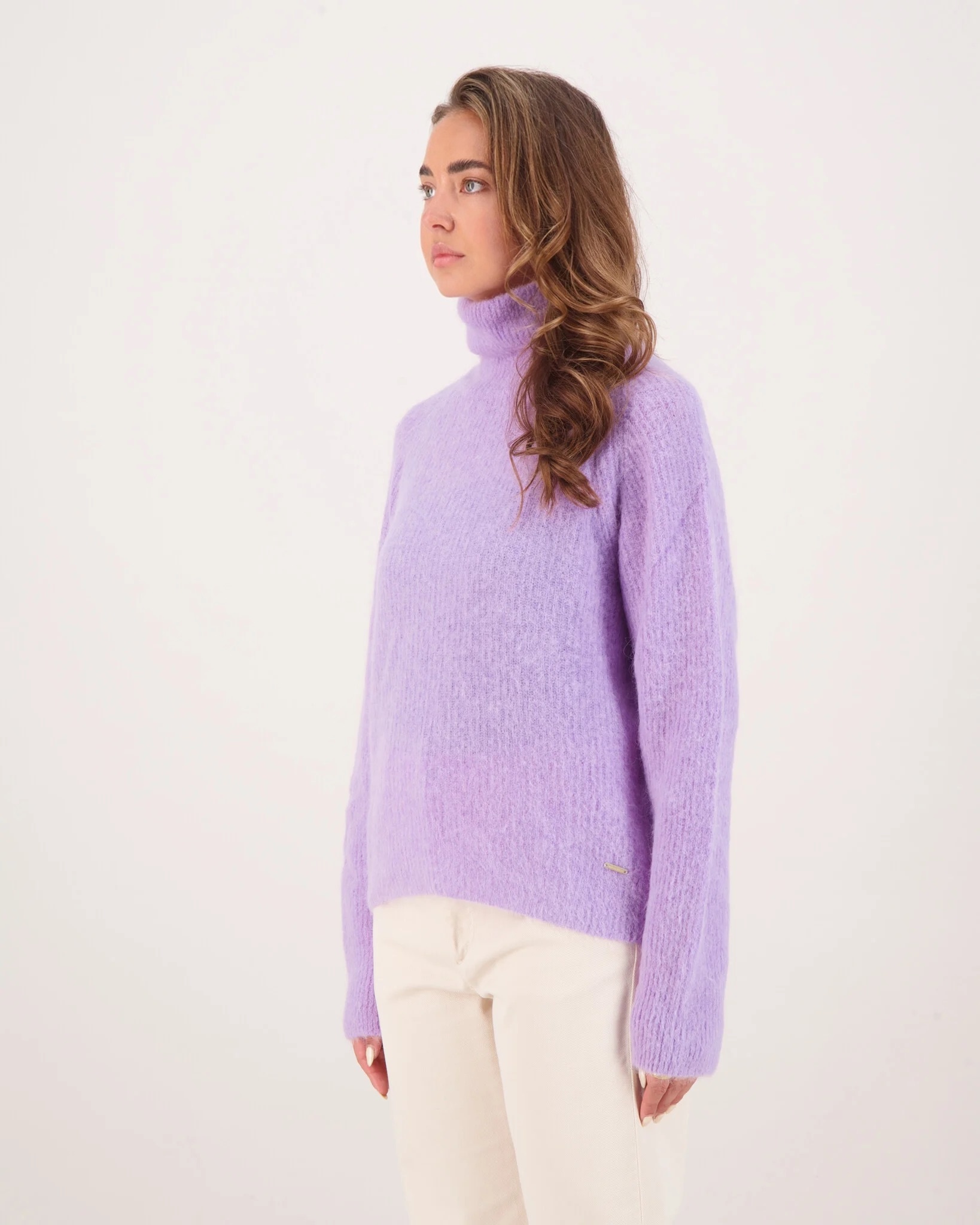 Een lichtgewicht en cocooning trui, vervaardigd uit een zachte mix van alpaca, wol, polyamide en elastaan. Het stuk is achteraf geverfd, waardoor elk item een unieke kleurtoon heeft. De klassiek ogende trui is voorzien van raglanmouwen, een geribbelde hoge kraag, manchetten en zoom, en wordt subtiel afgewerkt met een metalen Woolrich-logo.