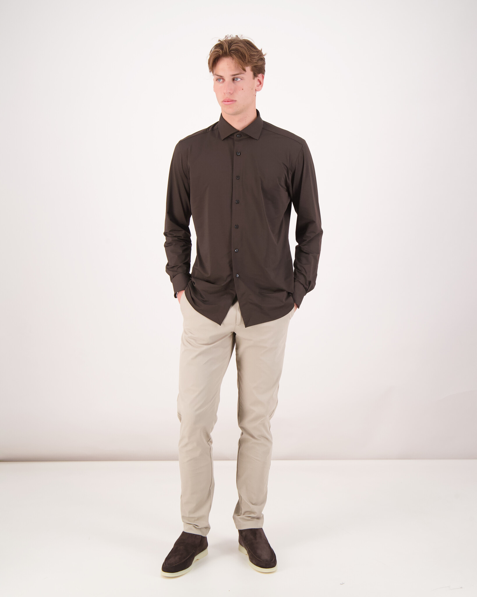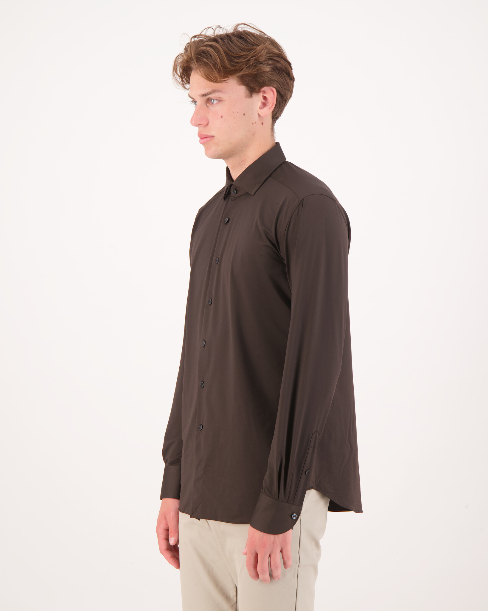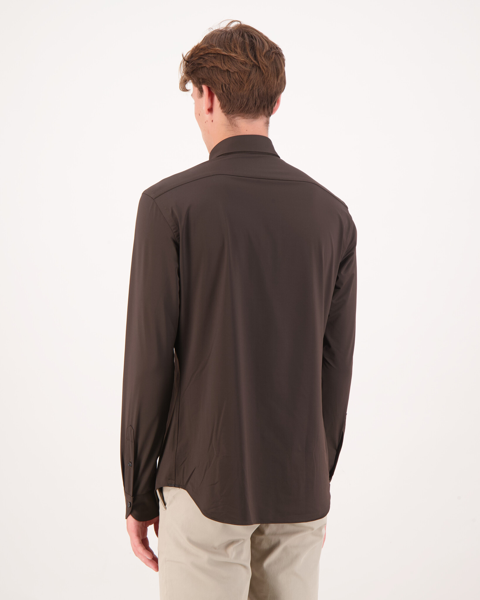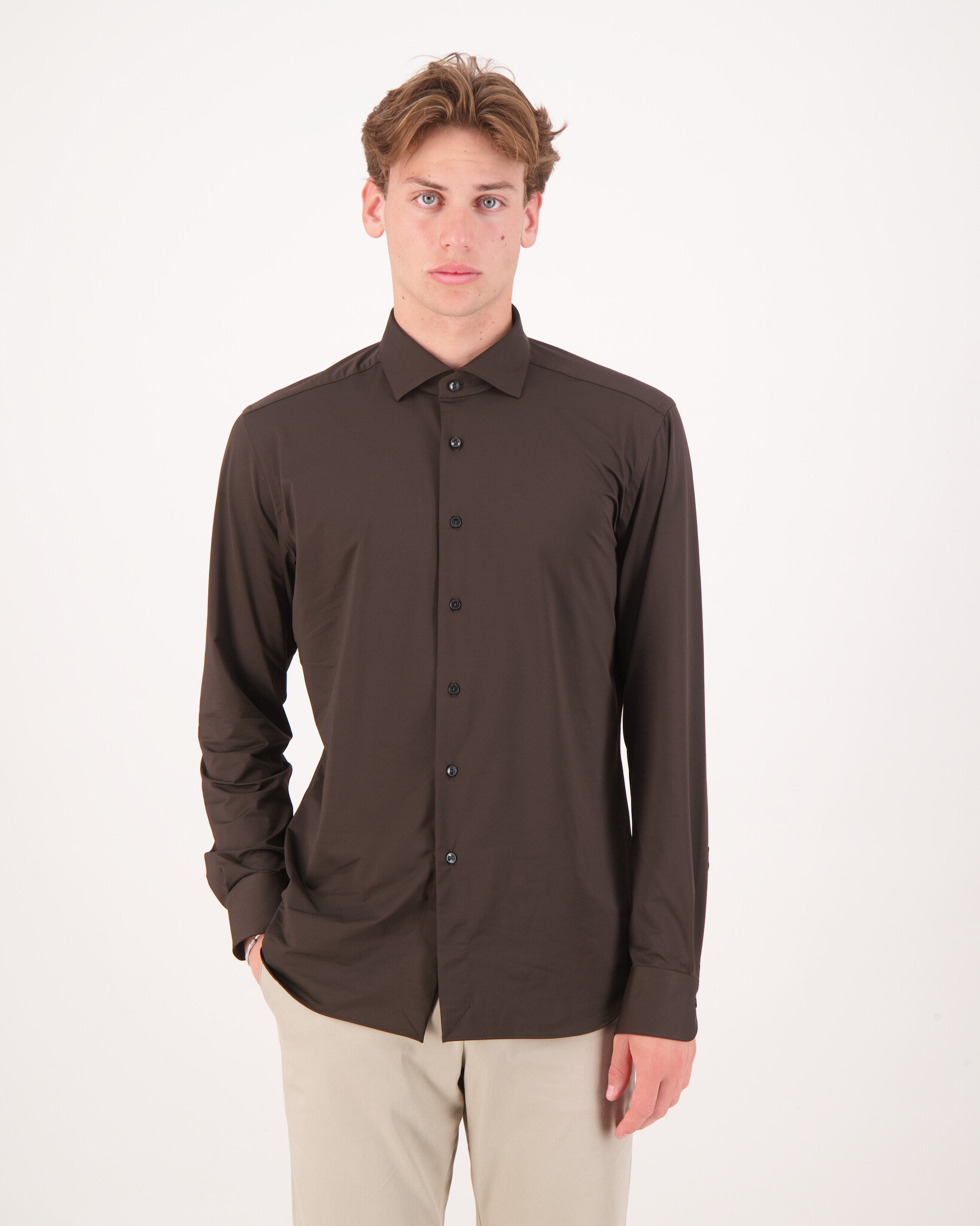 Bruine Active Tailor Fit 558ML Shirt van het merk Xacus. Het Active overhemd is zeer comfortabel voor elke activiteit, gemaakt van zeer ademend, 3D stretch polyamide en elastaan garen dat zeer snel droogt.