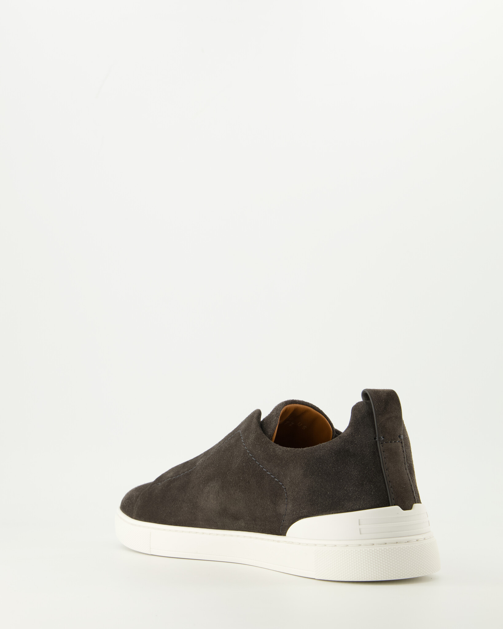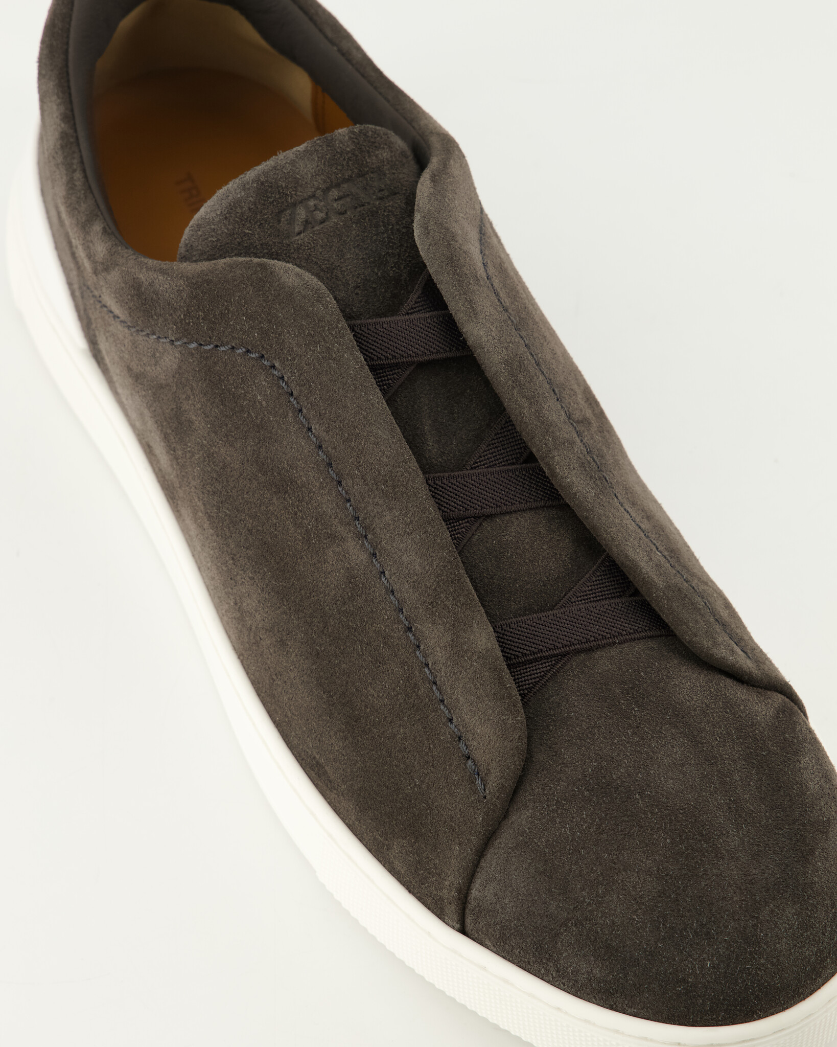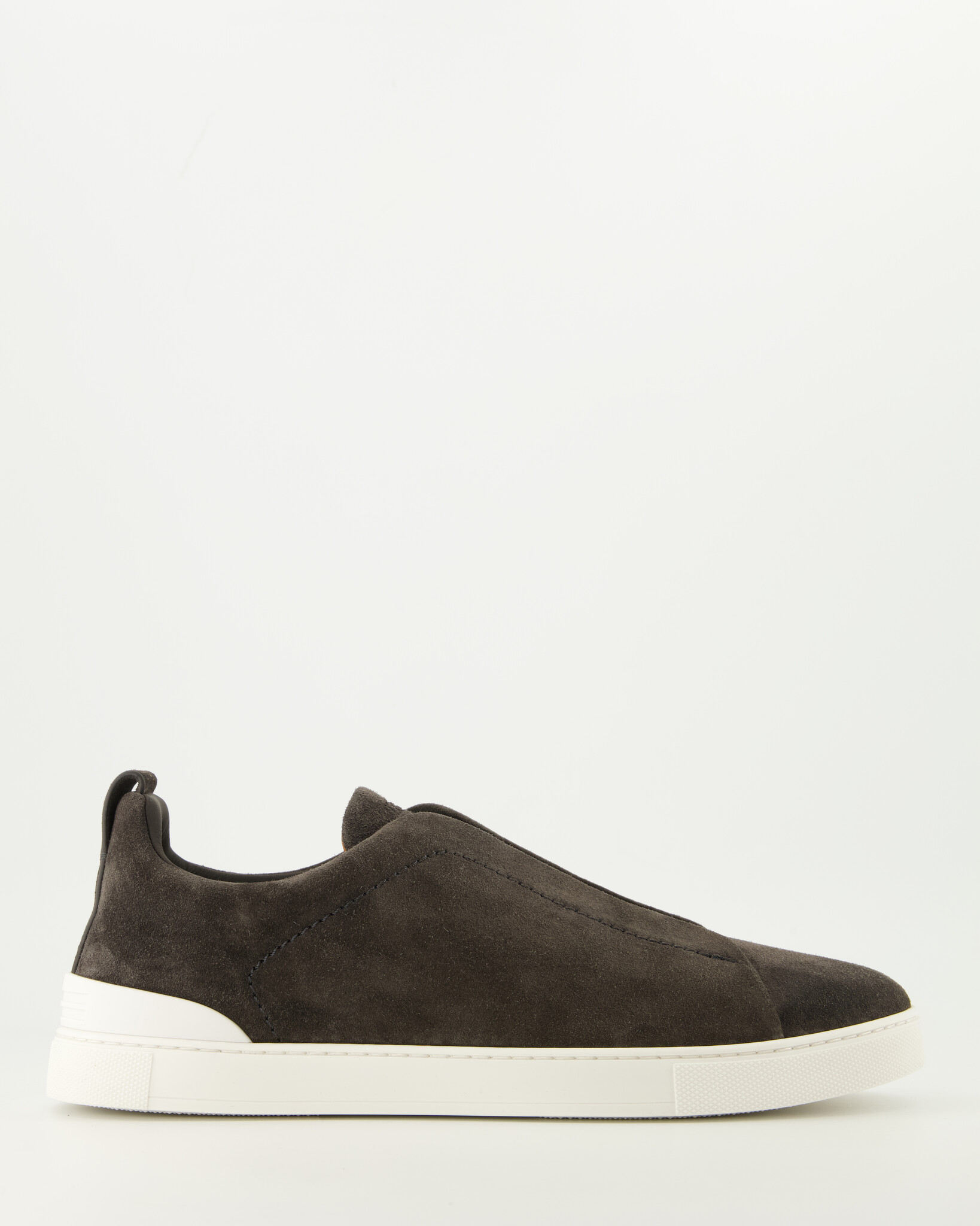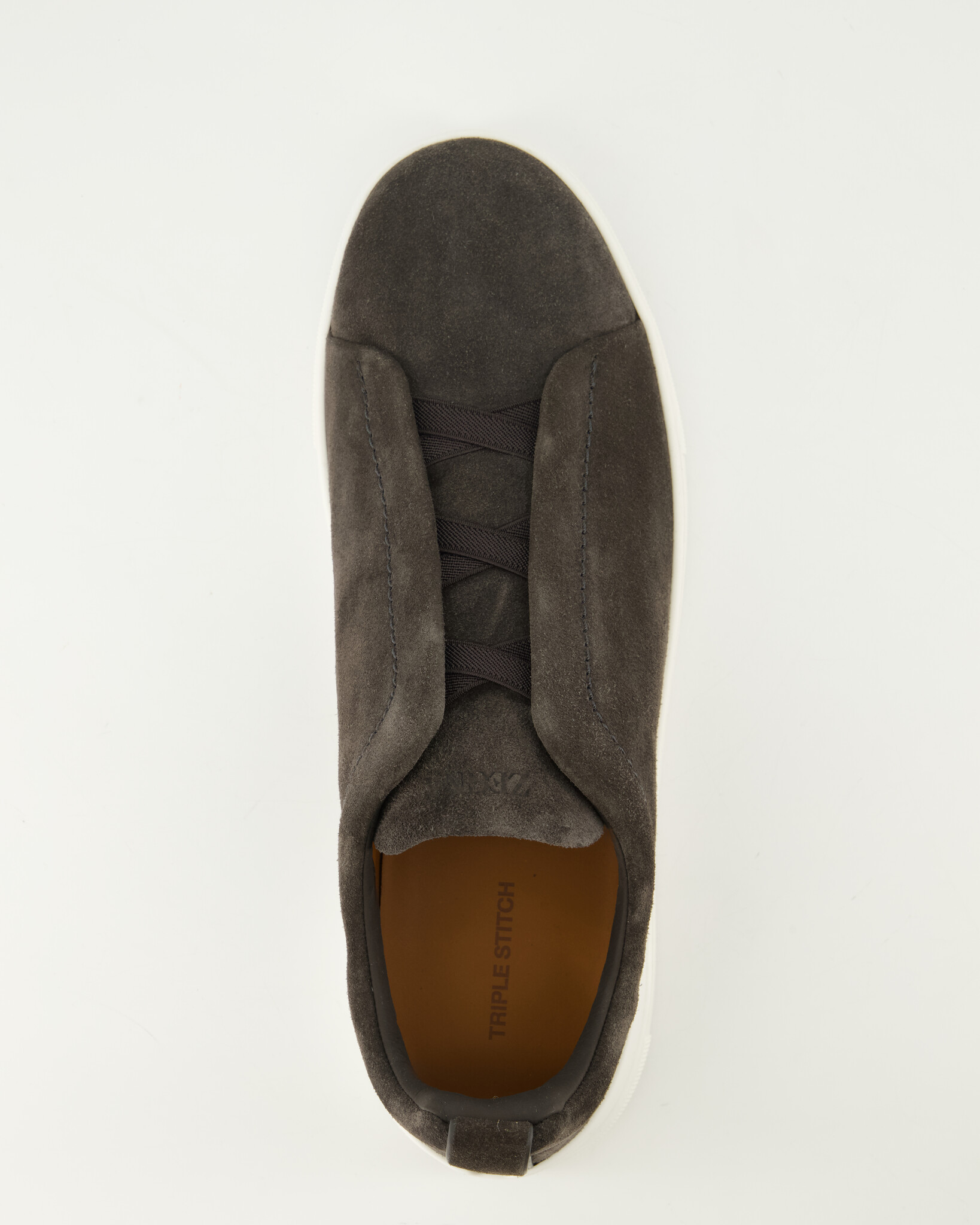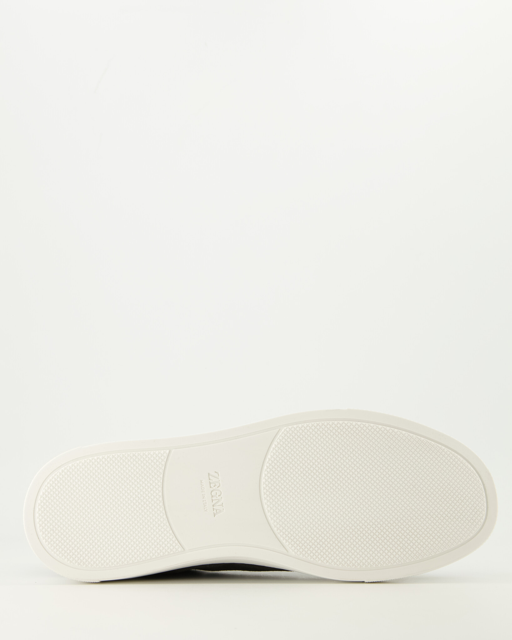 Grijze 'Low Top" van het merk Zegna. Deze sneaker van Leer en de neus van de schoen zijn Suede met een witte zool.